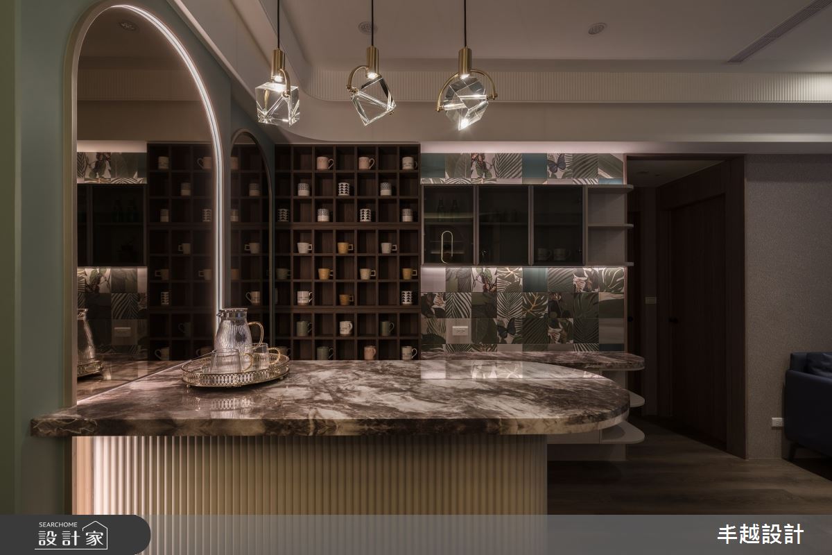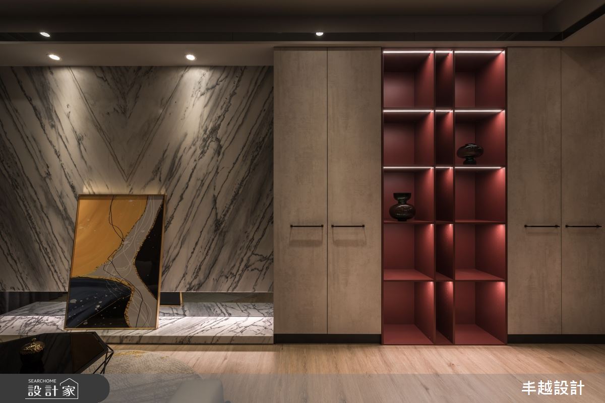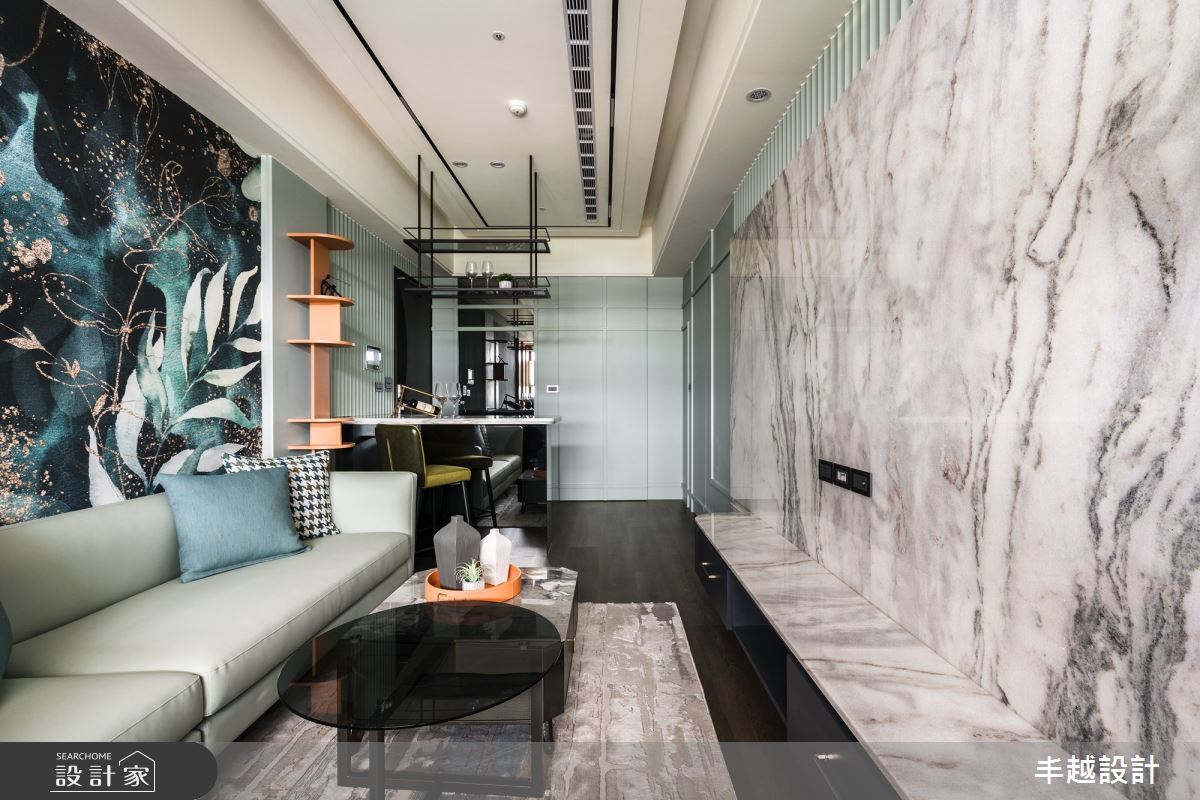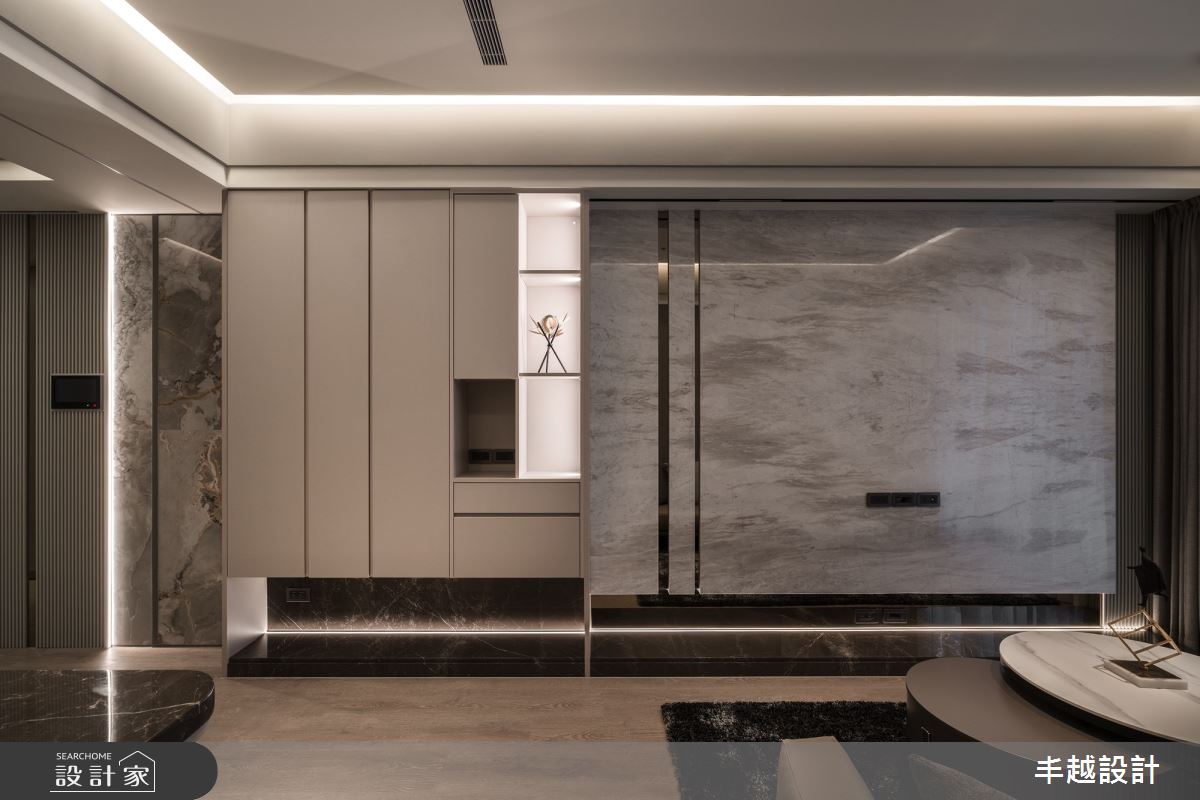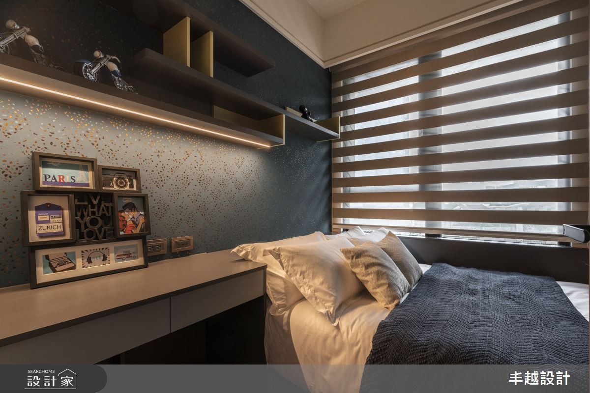 丰越設計呈現奢華風居家氛圍,將此間12坪、兩房、單層、新成屋(5年以下)打造成舒適愜意的家庭空間,完成全家人的夢想之居。