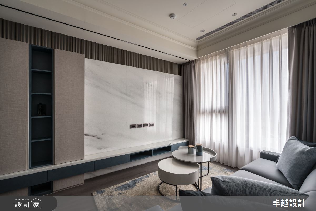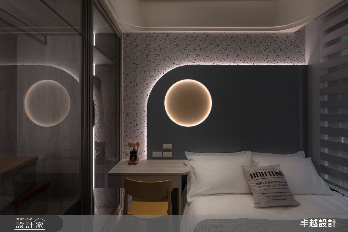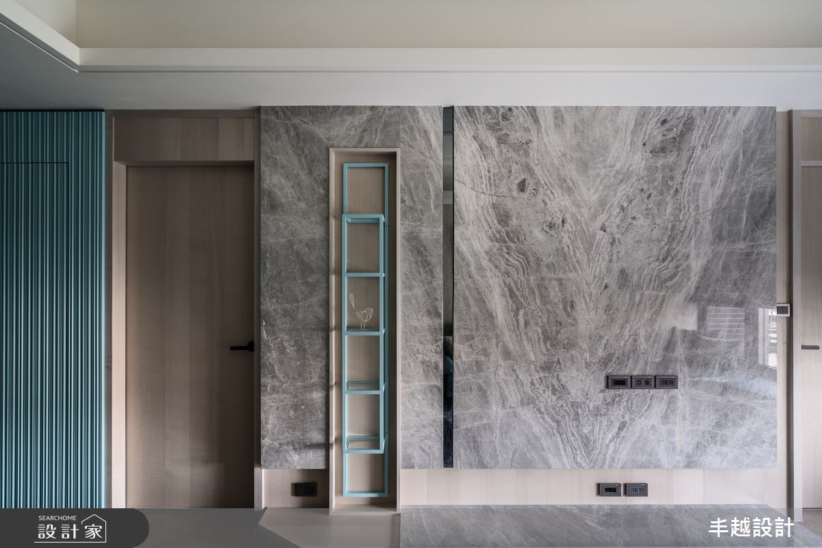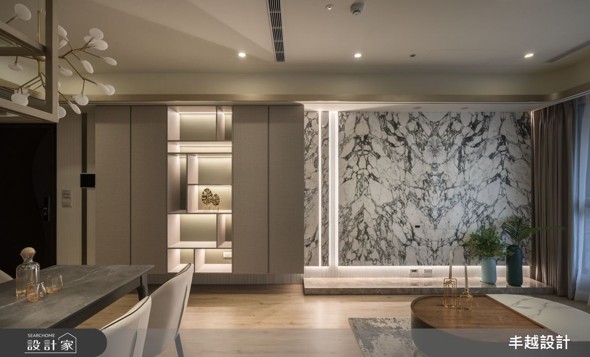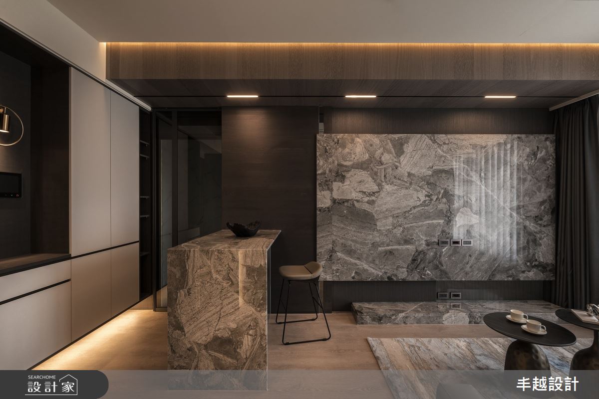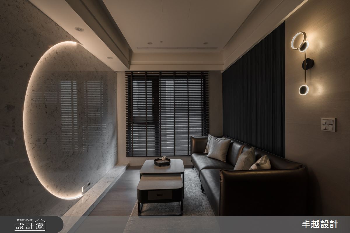由丰越設計精心規劃的12坪兩房住宅空間。因應屋主需求,設計師運用現代風作為主軸,搭配磁吸軌道燈、鋼刷實木皮、天然大理口,打造全家人的夢想家居。