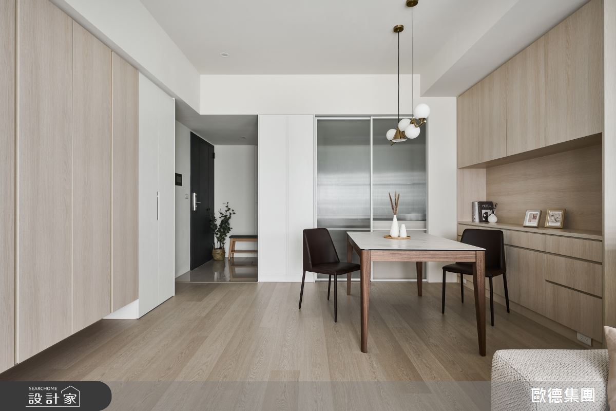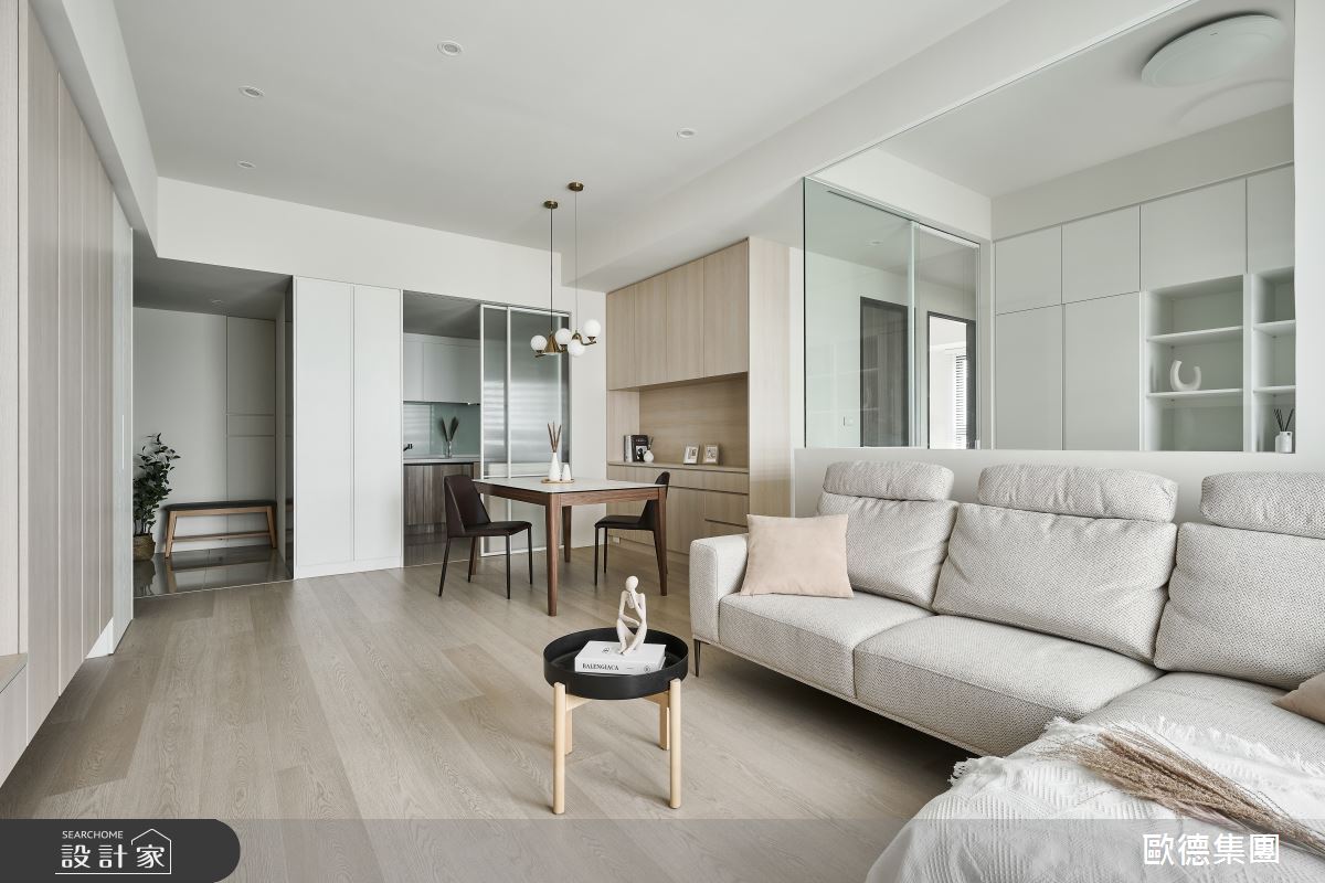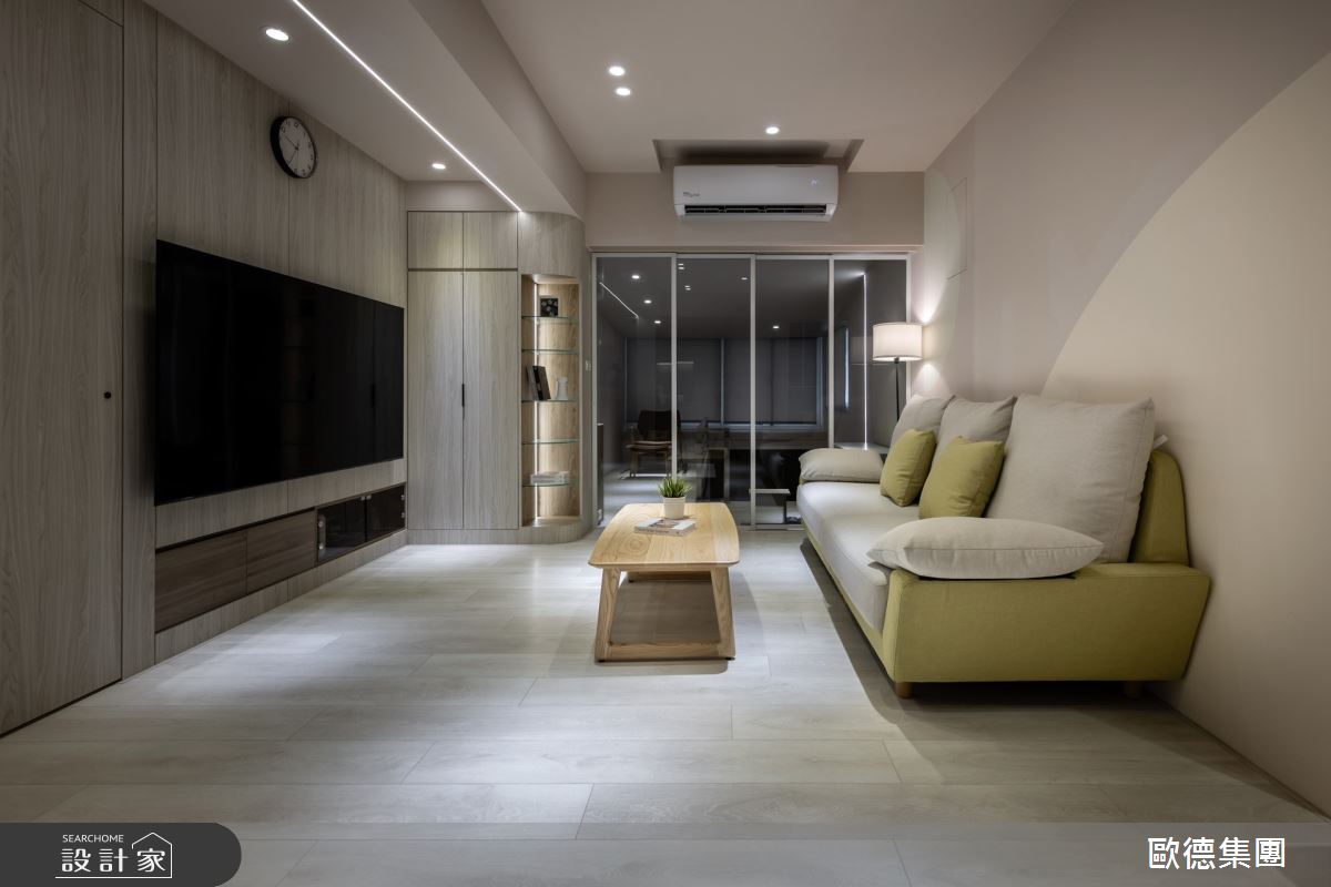本案為歐德傢俱設計團隊的21坪北歐風新成屋(5年以下)設計作品,格局為單層兩房的居住空間。居住成員包含1位大人、1位長輩。全室建材的搭配,應用優渥系統櫃、水磨石、LED燈條、木地板、鋁框、玻璃,展現溫馨的居家氛圍。