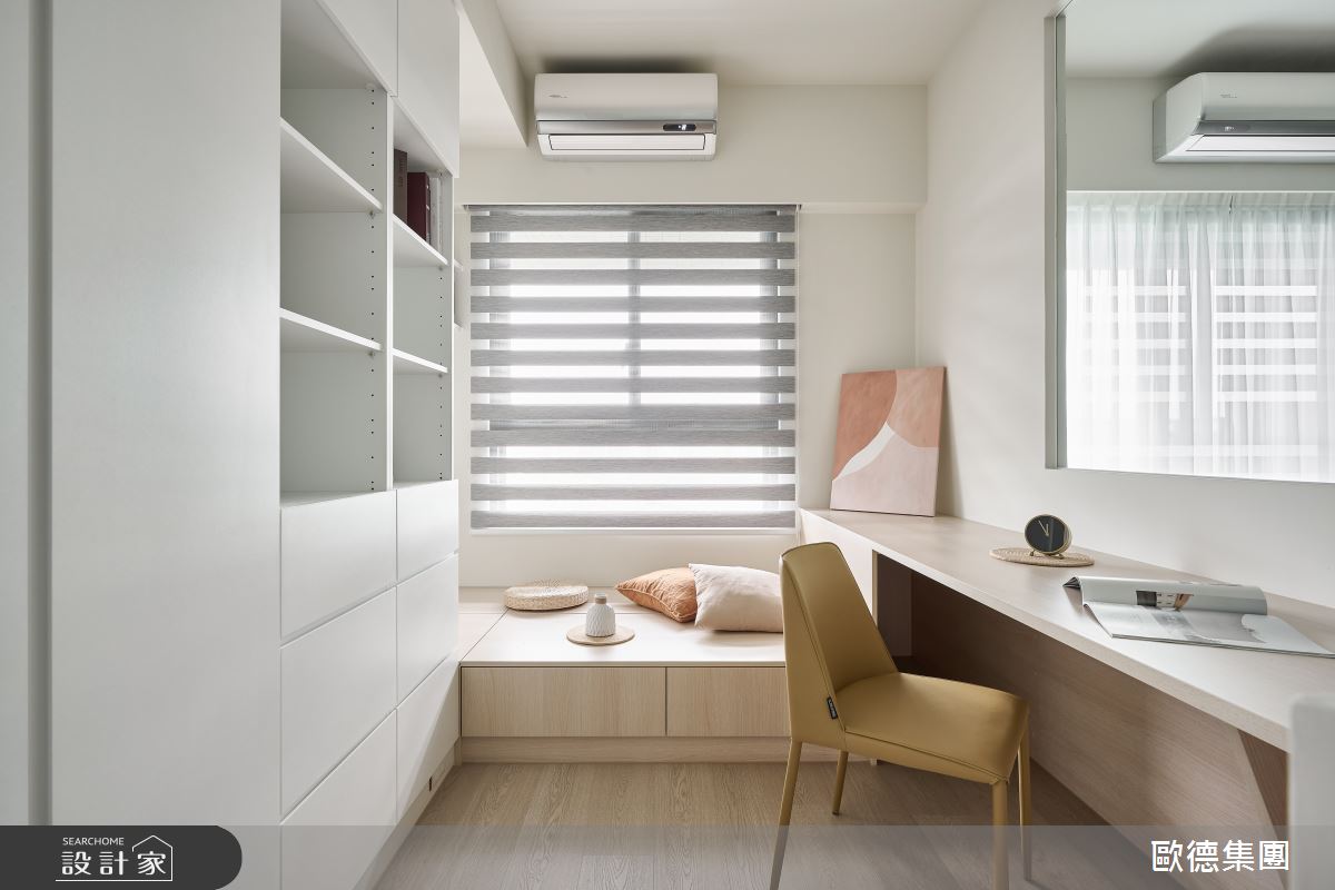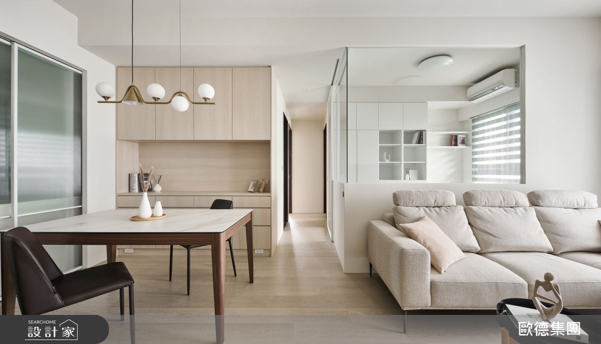 來自歐德傢俱設計團隊的18坪北歐風住宅案,屋主一家人共有2位大人、1位小孩,是一間單層新成屋(5年以下)的三房格局,設計師藉由建材以優渥系統櫃、波緹機能布沙發、如茵餐桌、彩色椅、豆芙兩用椅凳、彎曲靠背扶手椅、方塊糖果化妝椅、米蘭達三線連結式床墊、日落床架、經典多功能邊几、臥榻床架、Orderfloor德國超耐磨木地板的搭配應用,實現一家人的理想生活。