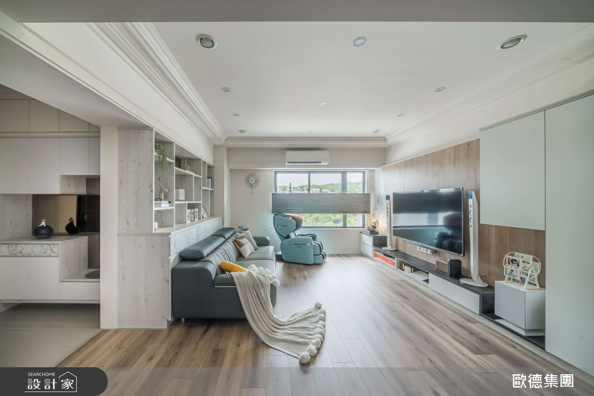 由歐德傢俱設計團隊精心規劃的28坪三房住宅空間,家庭成員一共有2位大人、2位長輩。因應屋主需求,設計師運用北歐風作為主軸,搭配歐德系統傢俱、油漆、石紋板、Orderfloor超耐磨木地板、格柵、拉門、升降折門,打造全家人的夢想家居。