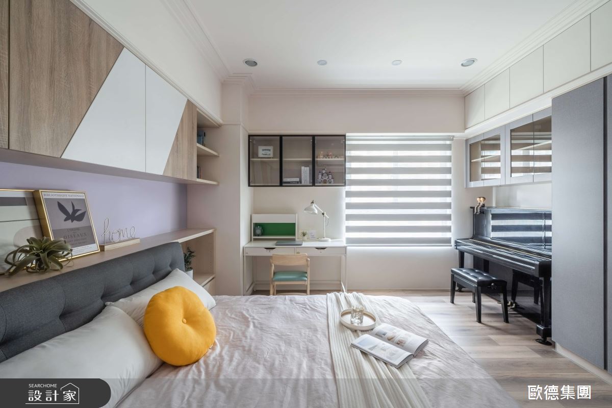 歐德傢俱設計團隊以歐德系統傢俱、Order波昂沙發、小蜻蜓掀床、優渥湖岸實木茶几、北歐風恬靜實木餐桌、帶帽小王子實木餐椅、油漆、木作、鋁框玻璃門、洞洞板、LED燈條的搭配應用,呈現北歐風居家氛圍,將此間36.5坪、四房、單層、老屋(16~30年)打造成舒適愜意的家庭空間,完成2位大人全家人的夢想之居。