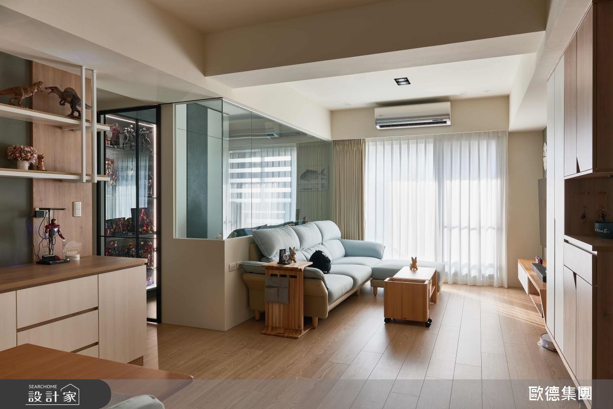 歐德傢俱設計團隊以歐德系統傢俱、藝術塗料、鋁框拉門、LED燈條、玻璃隔間、燈箱、優渥設計多功能邊几的搭配應用,呈現日式禪風居家氛圍,將此間22坪、兩房、單層、新成屋(5年以下)打造成舒適愜意的家庭空間,完成2位大人、1位小孩全家人的夢想之居。