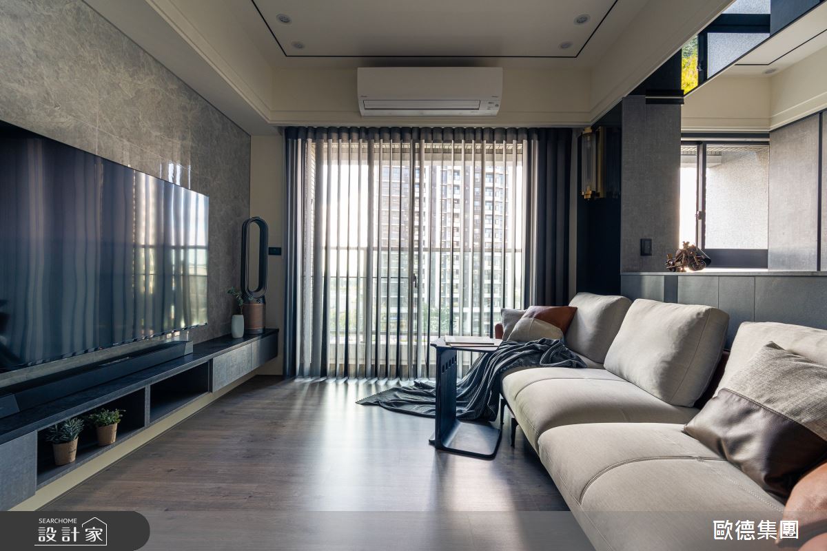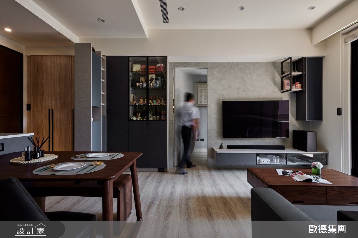 由歐德傢俱設計團隊精心規劃的35坪三房住宅空間,家庭成員一共有2位大人、2位小孩。因應屋主需求,設計師運用現代風作為主軸,搭配歐德鐵件、歐德系統櫃、霧面大理石、黑鏡、鋁框拉門、灰玻、長虹玻璃、跳色乳膠漆,打造全家人的夢想家居。