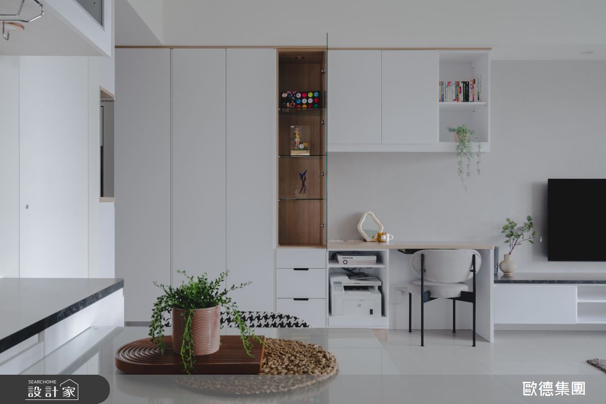 歐德傢俱設計團隊以歐德系統傢俱、馬來漆、磁性漆、隱藏門、小蜻蜓掀床的搭配應用,呈現混搭風居家氛圍,將此間26坪、三房、單層、新成屋(5年以下)打造成舒適愜意的家庭空間,完成1位大人全家人的夢想之居。