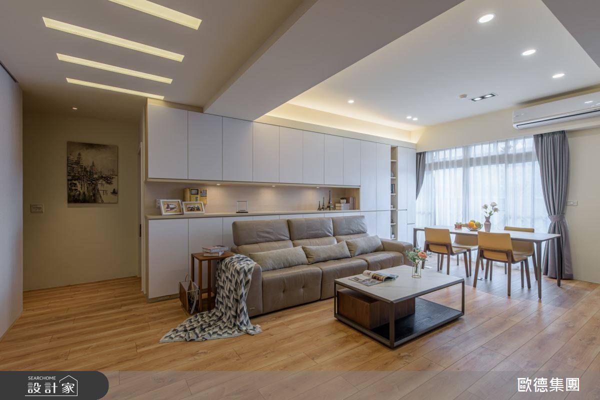 來自歐德傢俱設計團隊的17坪現代風住宅案,屋主一家人共有3位大人,是一間單層新成屋(5年以下)的三房格局,設計師藉由建材以優渥系統櫃、優渥設計凡島實木餐桌、湖濱實木長凳、經典長方四抽實木大茶几、圓弧造型收納櫃、北歐多功能邊几、UWOOD貝蒂床墊、ORDER波爾沙發的搭配應用,實現一家人的理想生活。