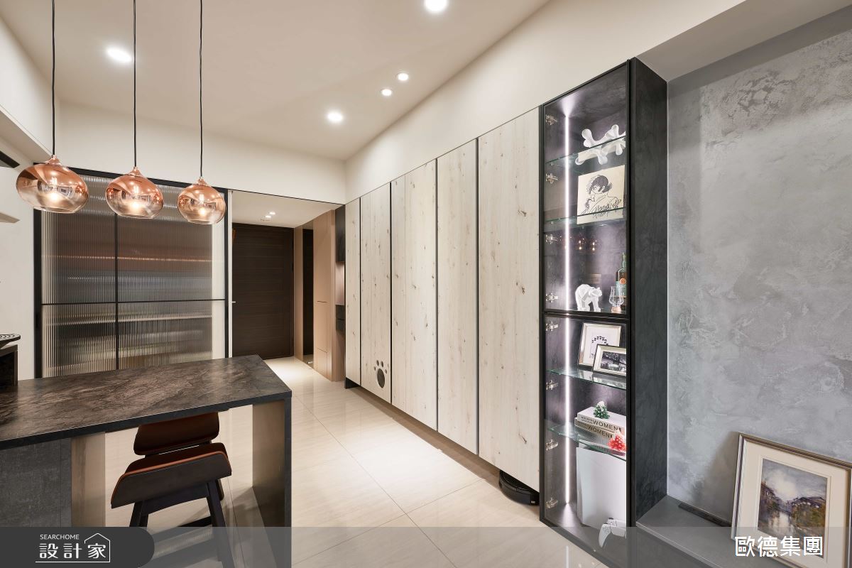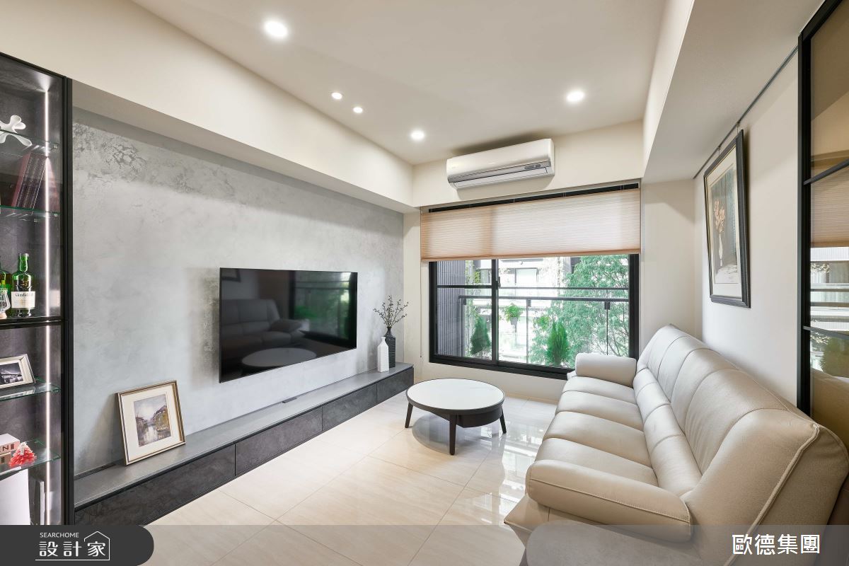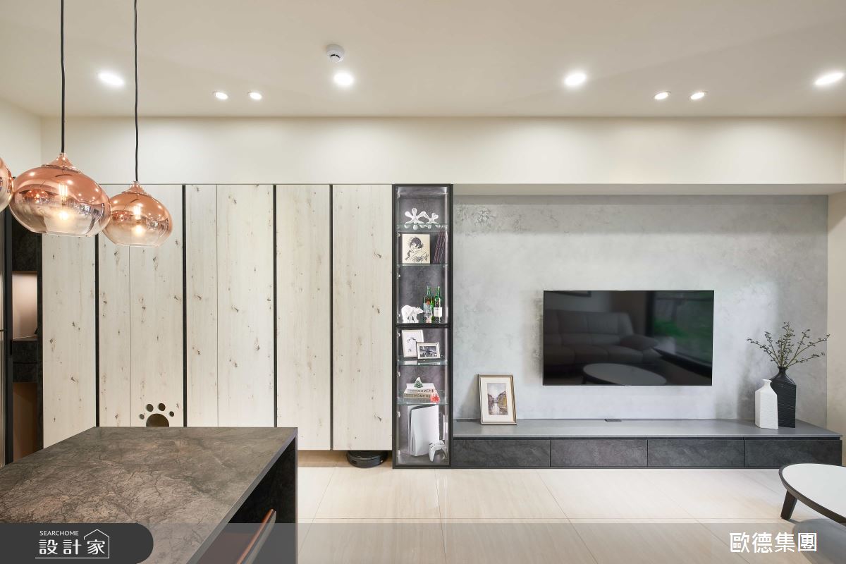 由歐德傢俱設計團隊精心規劃的32坪三房住宅空間,家庭成員一共有2位大人、1位小孩。因應屋主需求,設計師運用現代風作為主軸,搭配歐德系統傢俱、LED燈條、鋁框拉門、長虹玻璃、茶鏡、茶玻、藝術塗料,打造全家人的夢想家居。