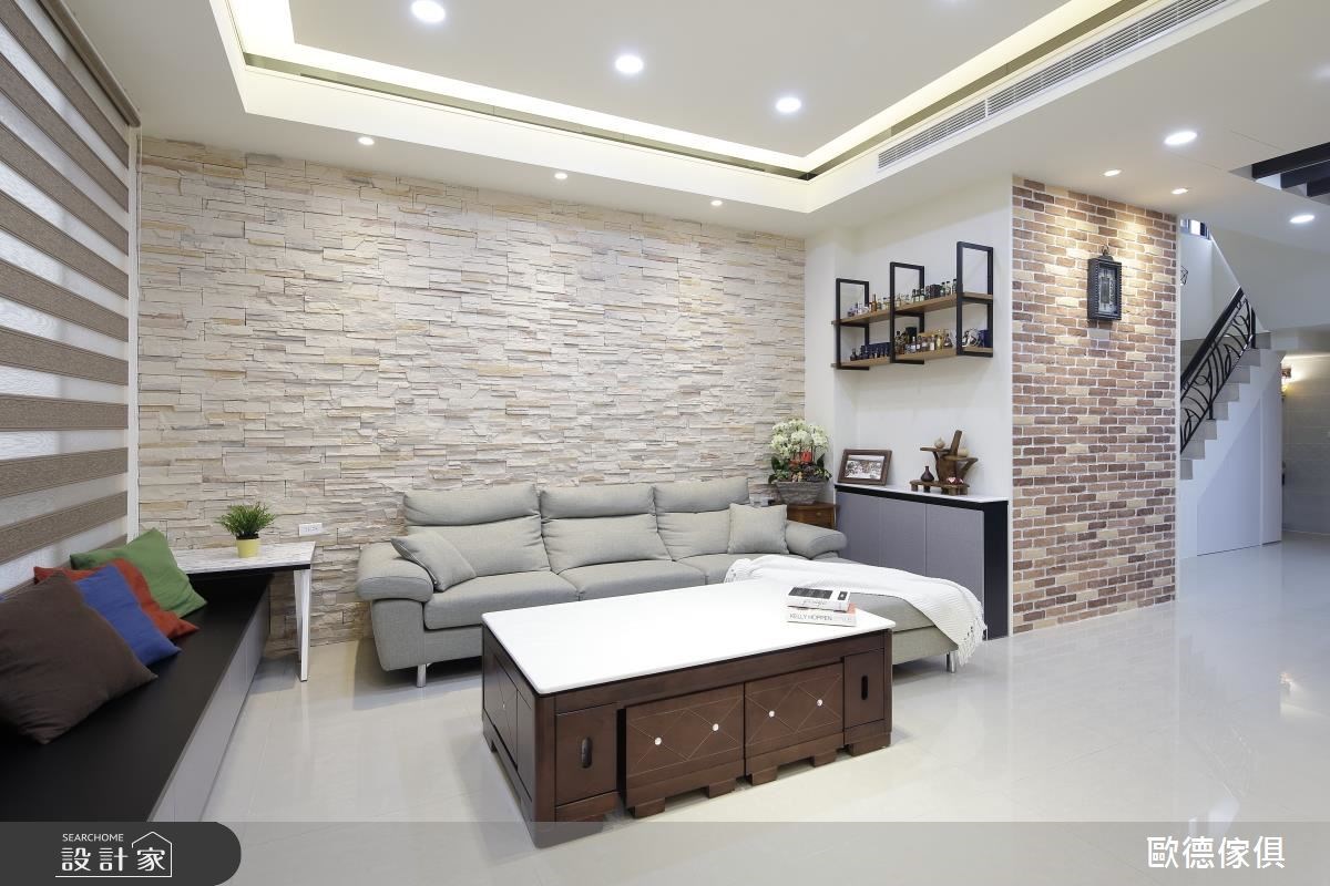 本案為歐德傢俱設計團隊的60坪混搭風新成屋(5年以下)設計作品,格局為透天別墅四房的居住空間。全室建材的搭配,應用大理石、文化石、板岩、鐵件、歐德系統櫃、人造石、歐德鄉村風門板、歐德框式門板,展現溫馨的居家氛圍。