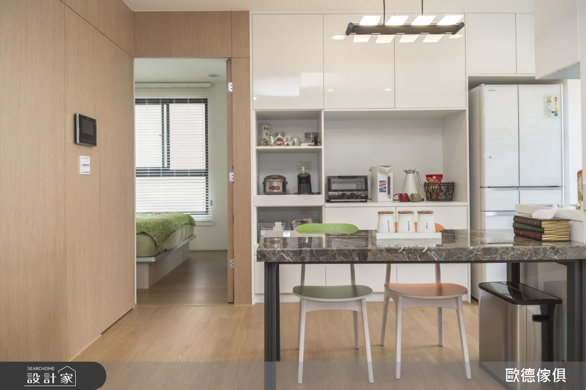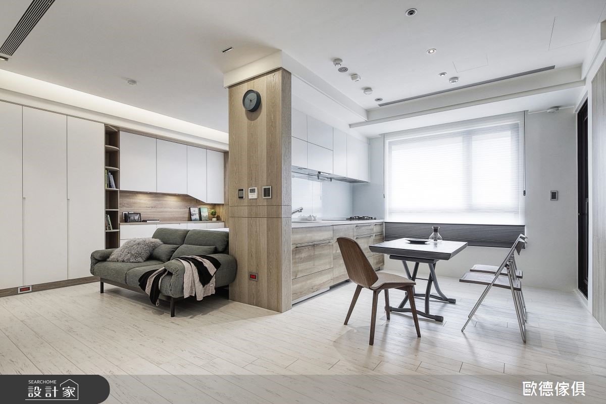 歐德傢俱設計團隊以歐德系統傢俱的搭配應用,呈現北歐風居家氛圍,將此間2坪、一房、新成屋(5年以下)打造成舒適愜意的家庭空間,完成全家人的夢想之居。