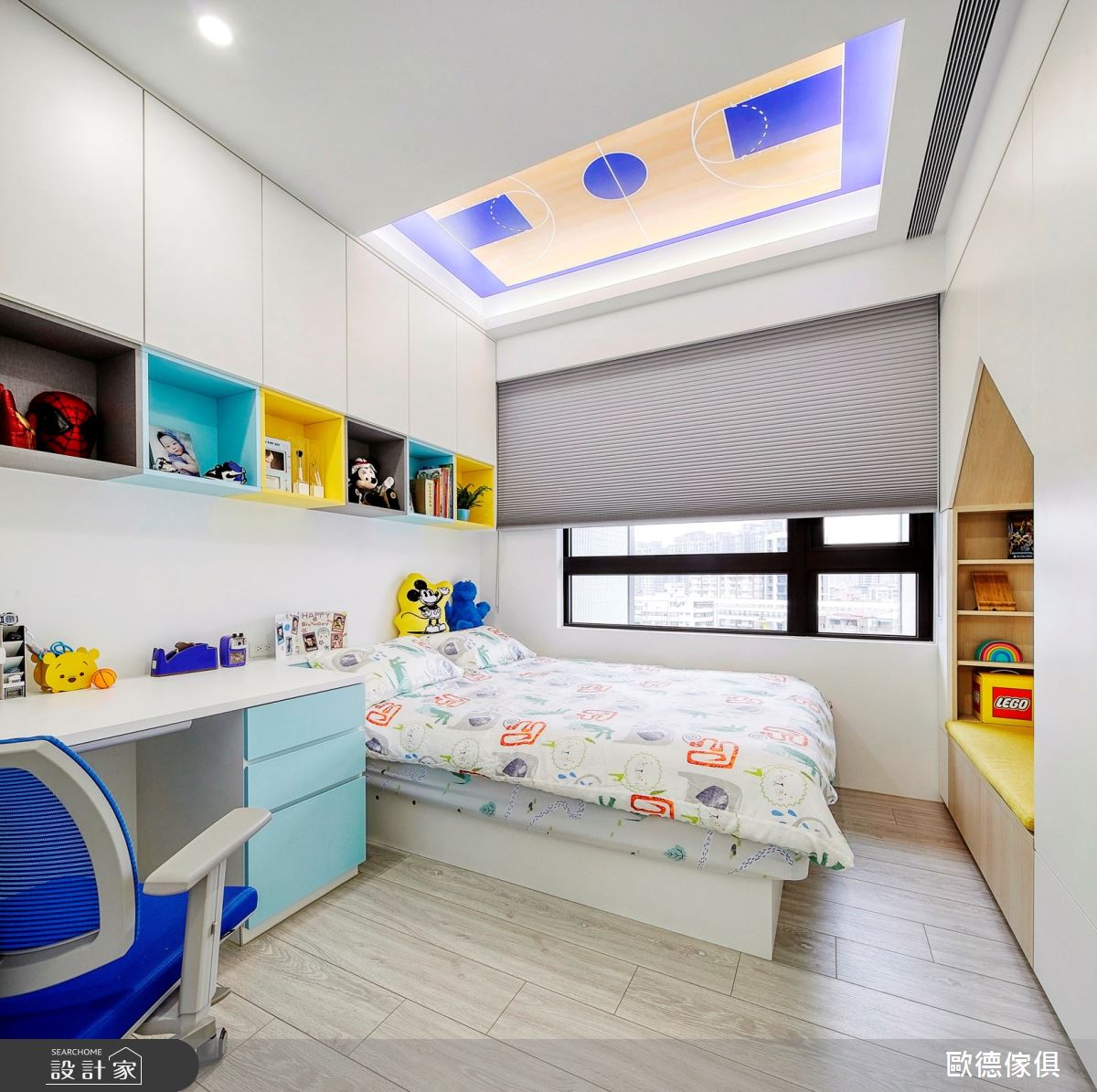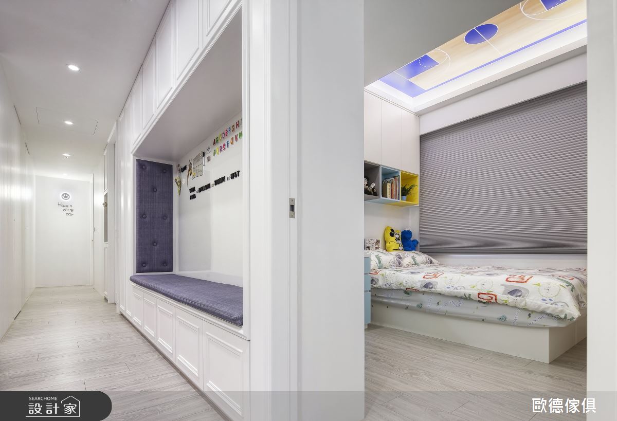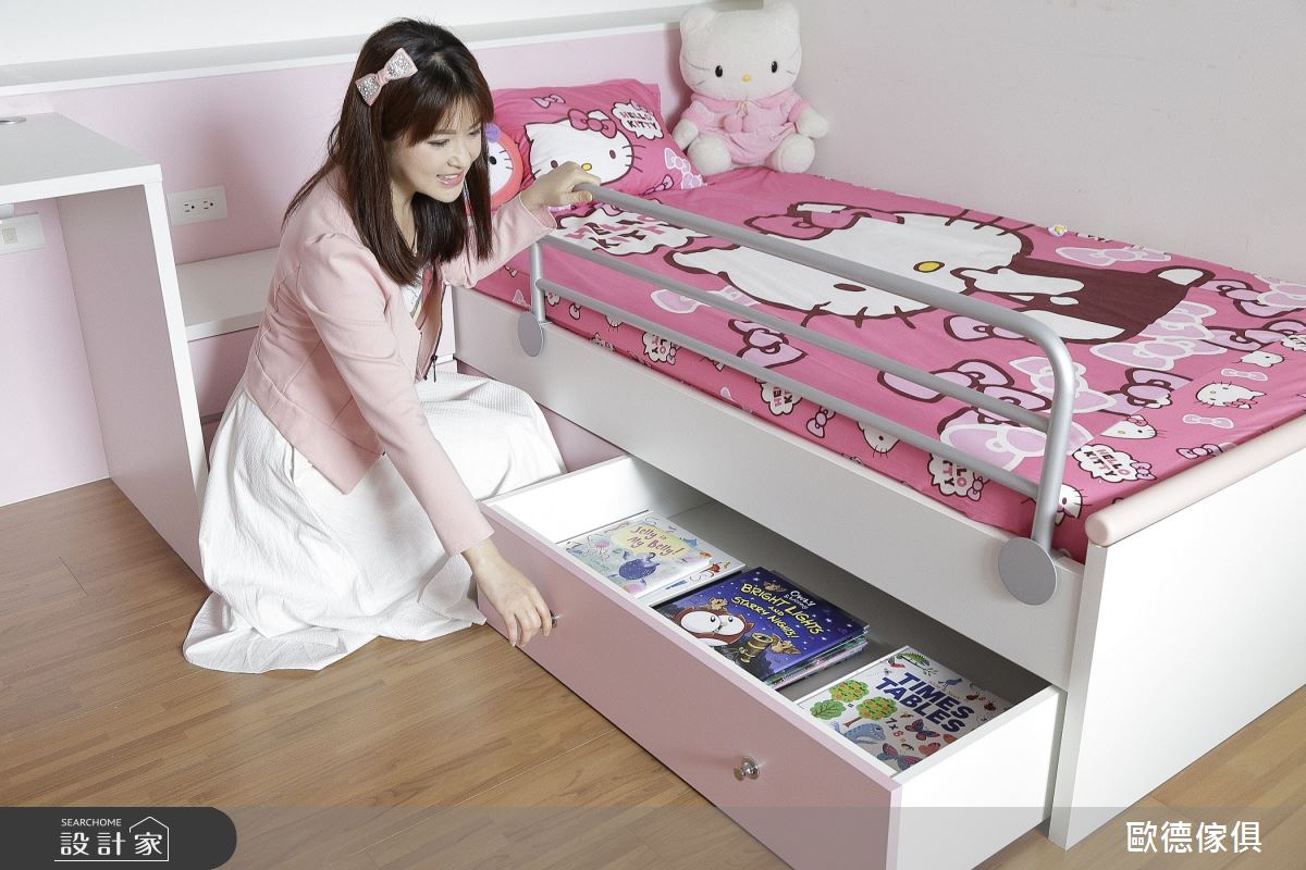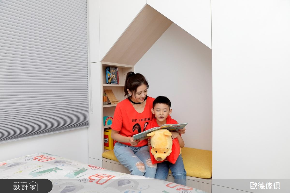 廖盈婷主播家中的 3 坪小房間,不僅是兒子的兒童房,也是兩夫妻的工作書房,必要時,更可當作親友的休憩客房使用,整體給予現代風定調,且加入高度彈性、環保無毒的系統家具,打造出讓主播一家均滿意的空間視野,快跟著小編一起來看看吧! 空間選以天空藍色做為主調,搭配著清爽粉紅的調和,展現童趣質感,並因應孩子大量的書籍、玩具收納需求,讓房內的每個角落都巧妙地置入收納功能,像是子母床的上下階梯、床下的抽屜等處,接暗藏了實用的櫃體機能,並搭配城堡造型收納箱,兼具童趣與置物功能,另外考量孩童安全,在階梯處加入圓形導角,並配置安全把手及緩衝滑軌,避免孩童於空間中碰撞受傷;同時,於書桌前方牆面規劃具磁性的塗鴉牆,採以天藍色為底,可作為孩子的塗鴉板與大人的留言記事板,讓成長中的孩子可盡情發揮美感,在此留下天馬行空的創意圖繪! 小編的最愛 透過歐德的專業服務,嚴選低甲醛綠建材,並給予快速的系統家具施工,成功讓 3 坪小房間變身高 CP 值多功能間,完成安全、環保、健康的夢想生活!