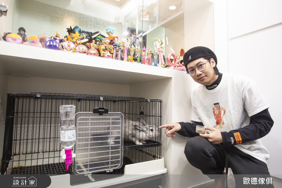 歐德傢俱設計團隊以歐德系統傢俱、油漆、燈帶、鋁框玻璃門、五金抽拉置物架、Order克洛伊床墊的搭配應用,呈現混搭風居家氛圍,將此間25坪、一房、單層、新成屋(5年以下)打造成舒適愜意的家庭空間,完成1位大人全家人的夢想之居。