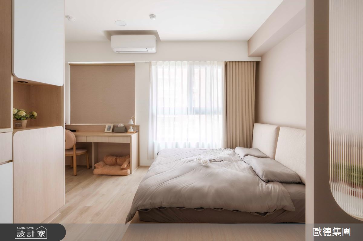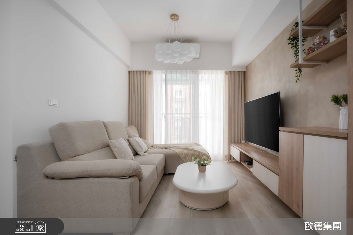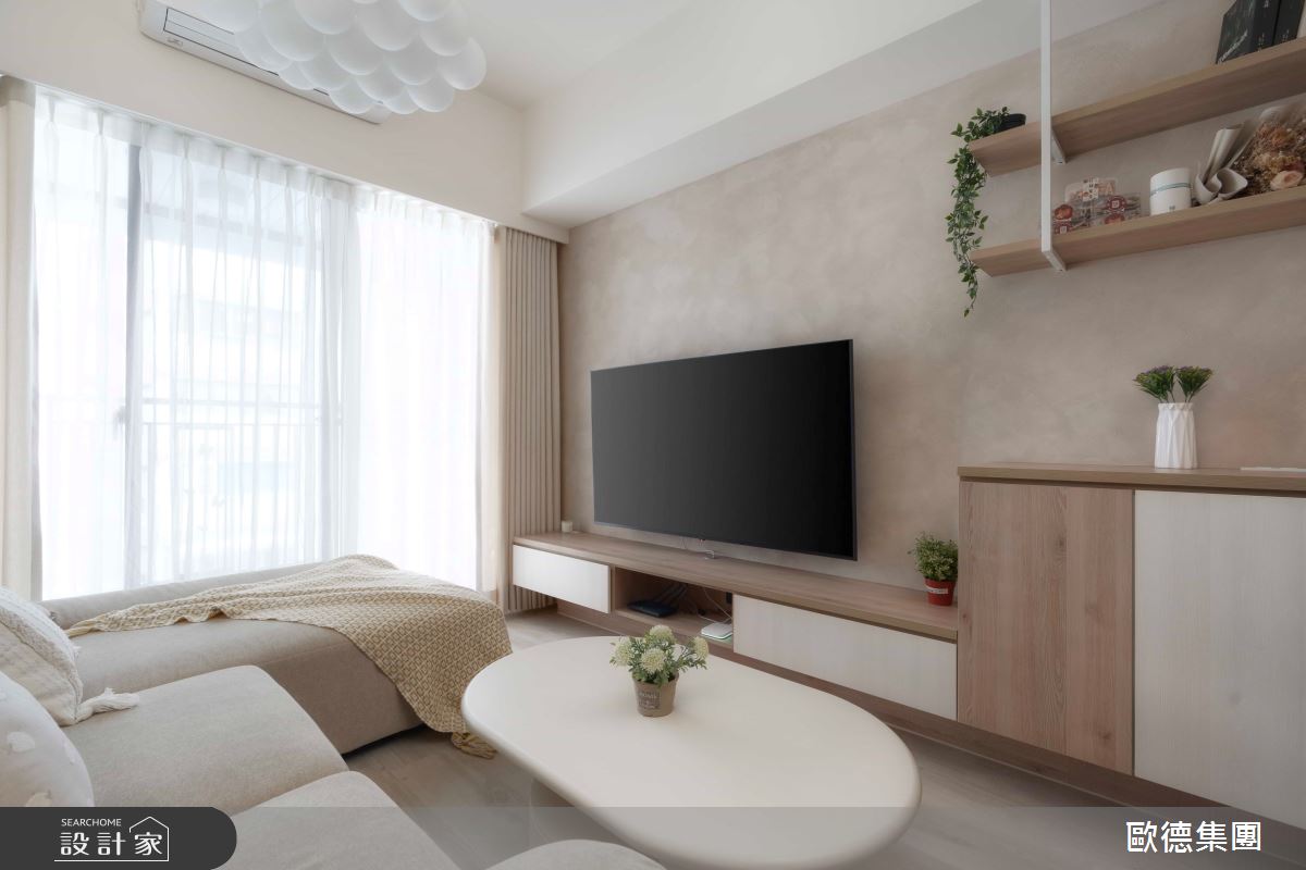 歐德傢俱設計團隊以歐德系統傢俱、鋁件拉門、長虹玻璃、藝術漆的搭配應用,呈現日式無印風居家氛圍,將此間16坪、一房、單層、新成屋(5年以下)打造成舒適愜意的家庭空間,完成2位大人全家人的夢想之居。