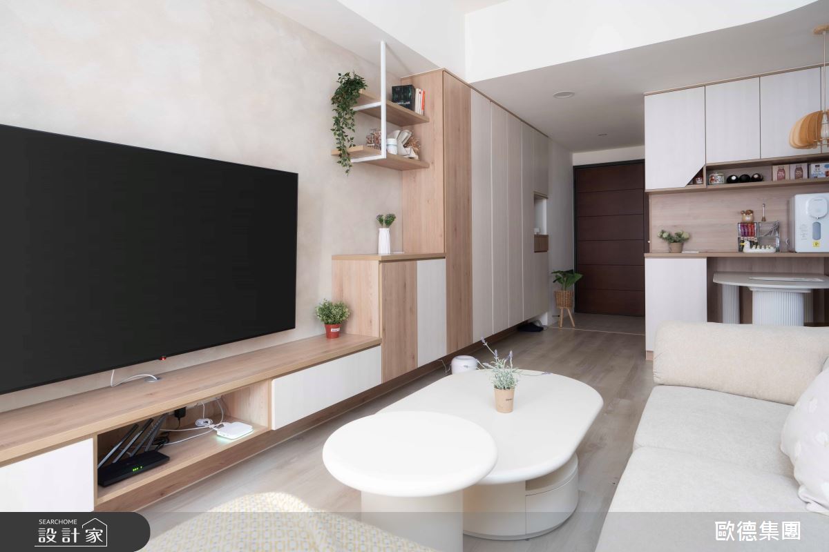 由歐德傢俱設計團隊精心規劃的15坪一房住宅空間。因應屋主需求,設計師運用現代風作為主軸,搭配歐德系統傢俱,打造全家人的夢想家居。