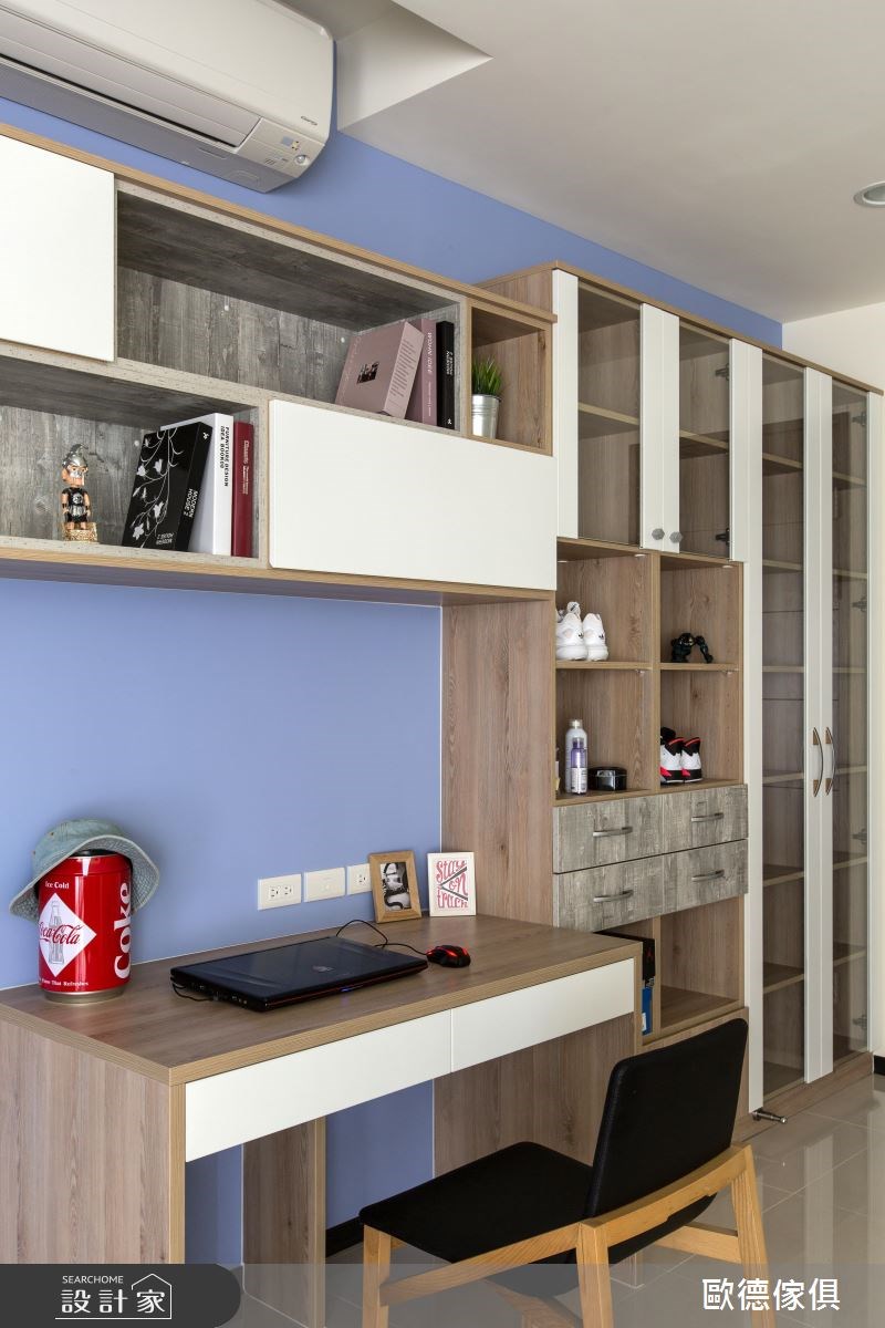 系統家具在室內設計已逐漸晉升為美型可高於機能的地位,歐德設計團隊為一家 3 口的 50 坪透天量身打造,克服了屋形狹長、採光以及單層面積有限的困擾,完成了簡約清新的浪漫美式風格。 由於屋主喜愛優雅的美式風格,加上扣掉僅有前後採光以及單層面積不大的問題,設計師將大量純白線板應用在櫃體與天花板,搭配裸色調,營造簡約淡雅的氣息,更放大視覺感受。依據屋主的生活習慣,以白框玻璃拉門串連客廳與餐廚空間,打造隨心自如的開放設計。餐廳以白色木作打造迷你中島吧台,是女主人平時最能放鬆的空間。針對主臥設計,設計師於壁面與軟件注入淺紫色調,增添了浪漫柔美的氛圍,更於窗邊設置臥榻,同時兼具觀景與收納機能。 小編的最愛 設計師特別為女主人打造了夢寐以求的獨立更衣間,牆面漆上粉紅色,並在 L型衣櫃內部設置大面旋轉鏡,可隨時抽出整體儀容,美觀又具機動性。
