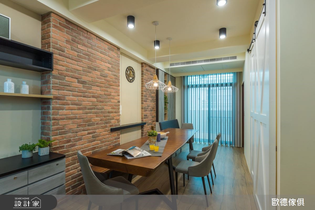 來自歐德傢俱設計團隊的67坪混搭風住宅案,屋主一家人共有2位大人,是一間單層新成屋(5年以下)的五房格局,設計師藉由建材以木工、大理石、鐵件、膠合玻璃、烤漆線板、壁紙、繃布、系統櫃的搭配應用,實現一家人的理想生活。