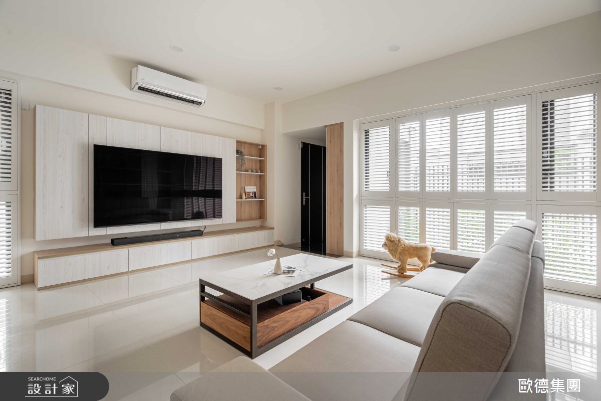 來自歐德傢俱設計團隊的41坪現代風住宅案,屋主一家人共有2位大人,是一間透天別墅新成屋(5年以下)的五房格局,設計師藉由建材以歐德系統傢俱、Order夏綠蒂床墊、義大利麂皮漆、義大利白玉雲石磁磚、鋁框玻璃門的搭配應用,實現一家人的理想生活。