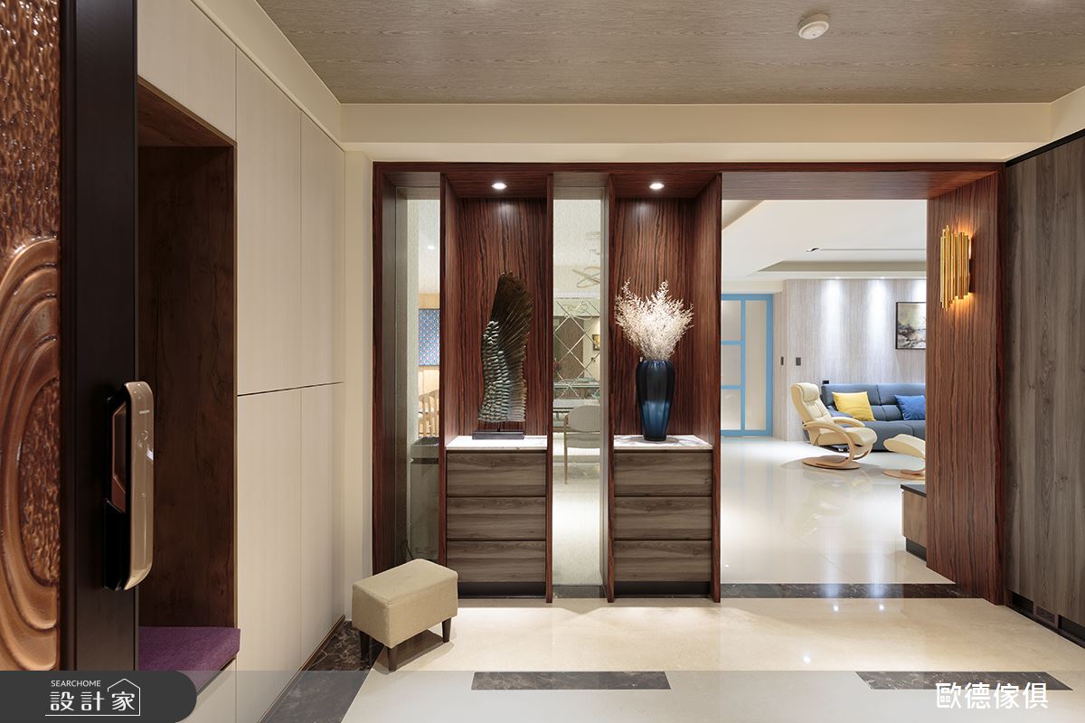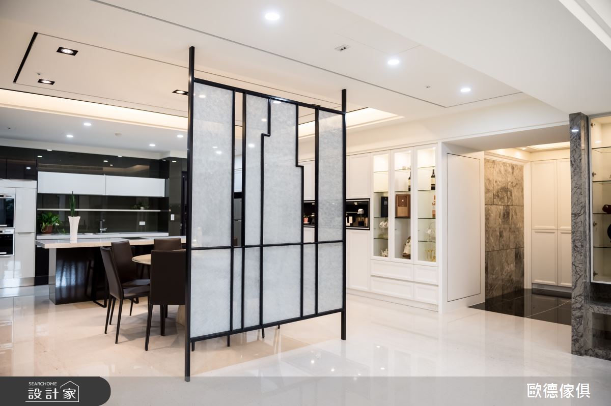 來自歐德傢俱設計團隊的67坪混搭風住宅案,屋主一家人共有2位大人,是一間單層新成屋(5年以下)的五房格局,設計師藉由建材以木工、大理石、鐵件、膠合玻璃、烤漆線板、壁紙、繃布、系統櫃的搭配應用,實現一家人的理想生活。