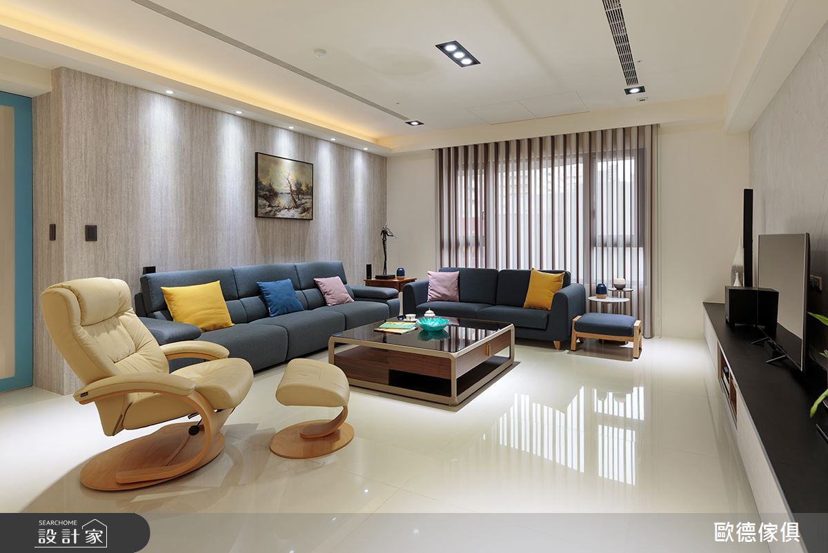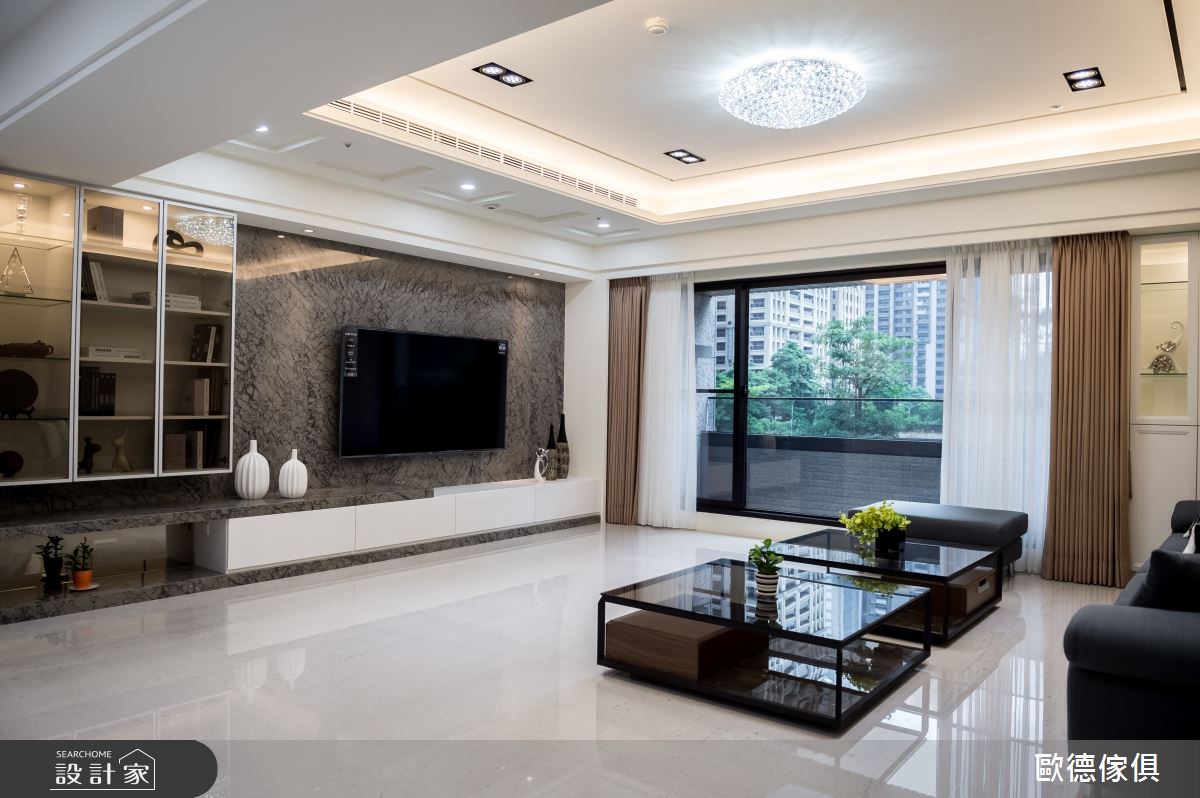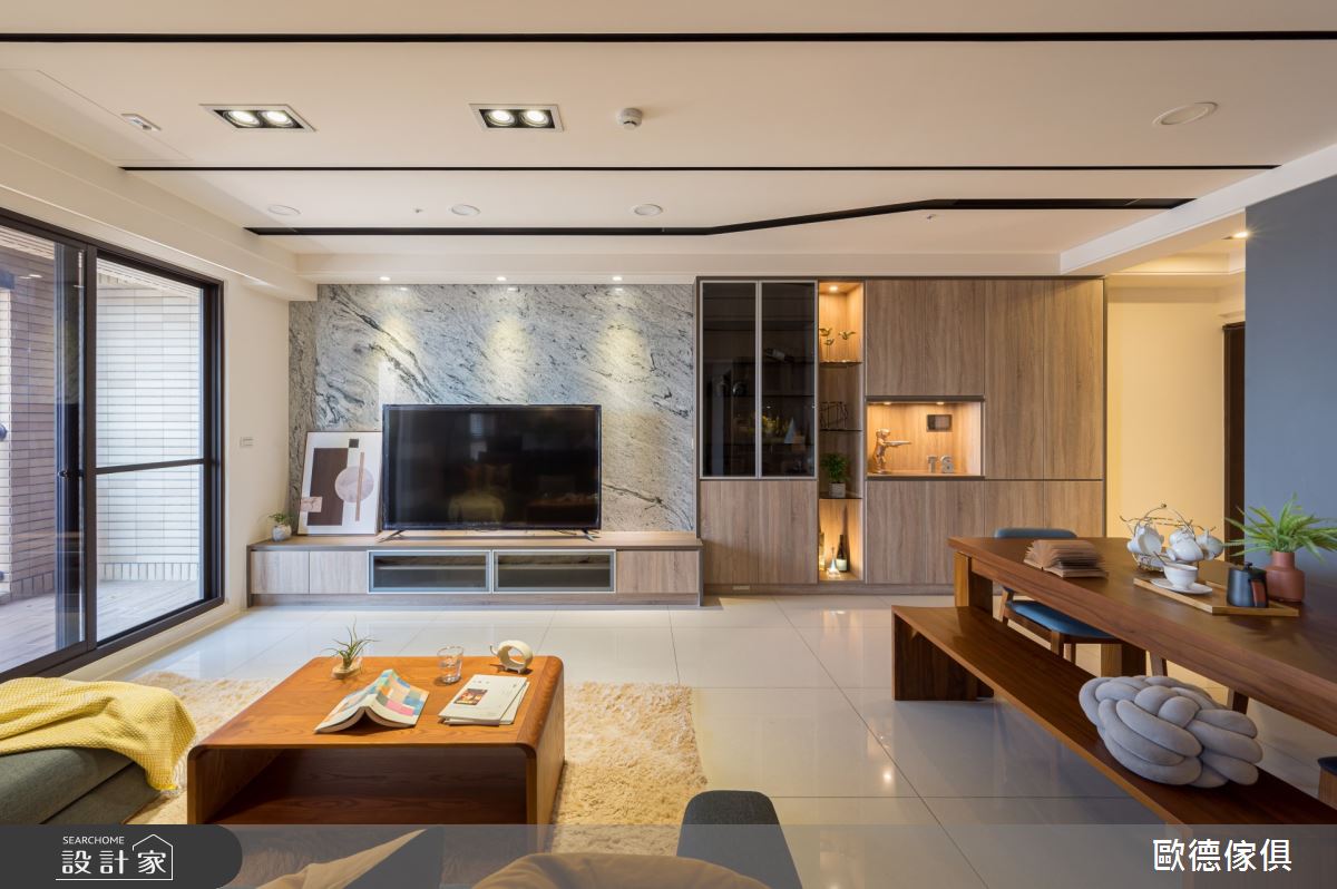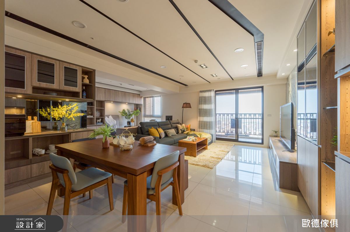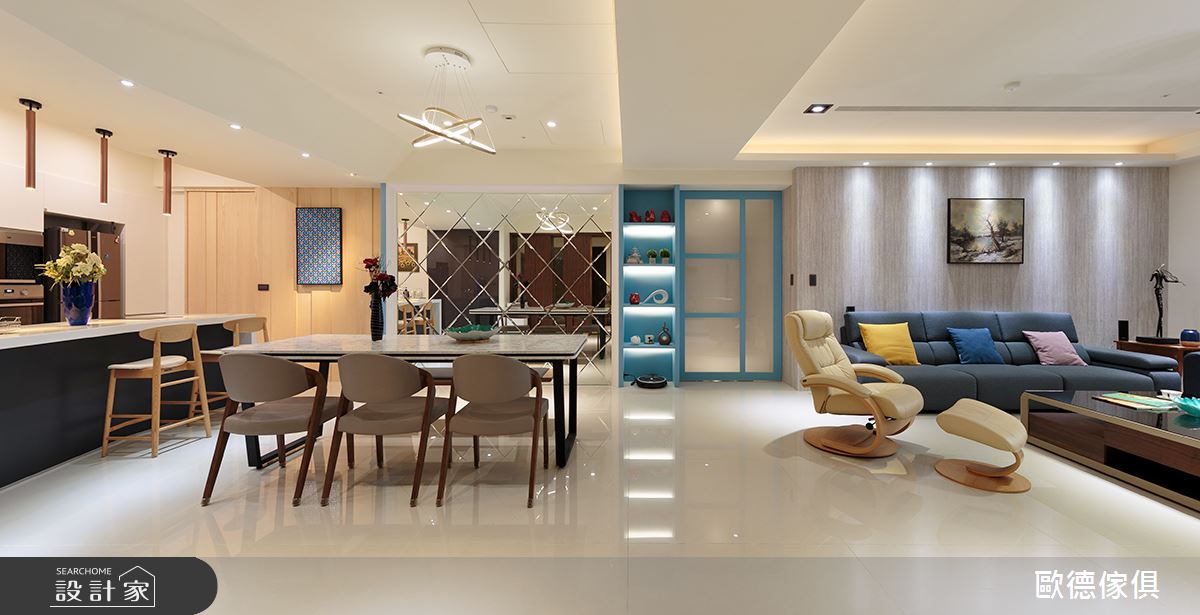 由歐德傢俱設計團隊精心規劃的55坪三房住宅空間,家庭成員一共有3位大人。因應屋主需求,設計師運用現代風作為主軸,搭配歐德系統傢俱、Orderfloor超耐磨木地板、LED燈條,打造全家人的夢想家居。