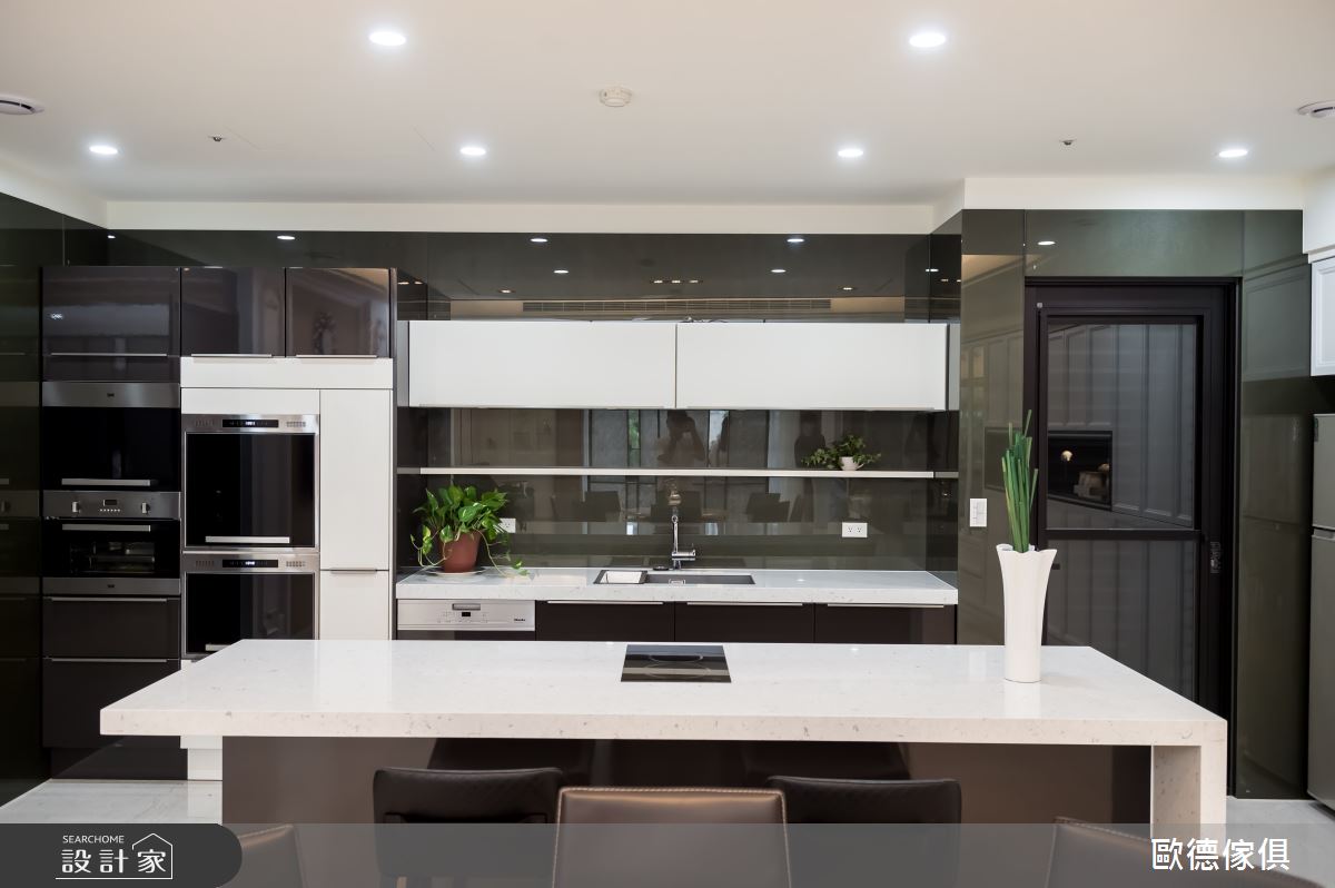 由歐德傢俱設計團隊精心規劃的88坪六房住宅空間,家庭成員一共有2位大人、2位小孩、2位長輩。因應屋主需求,設計師運用現代風作為主軸,搭配歐德系統傢俱、烤漆、大理石、燈帶、金屬、鏡面、洞洞板,打造全家人的夢想家居。