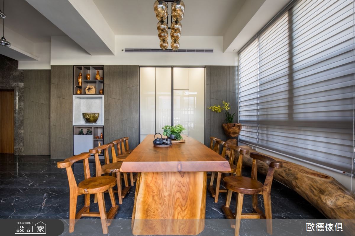 由歐德傢俱設計團隊精心規劃的80坪五房住宅空間。因應屋主需求,設計師運用混搭風作為主軸,搭配歐德系統傢俱、天然木皮、大理石、鐵件、玻璃、特殊塗料、超耐磨木地板、壁紙,打造全家人的夢想家居。
