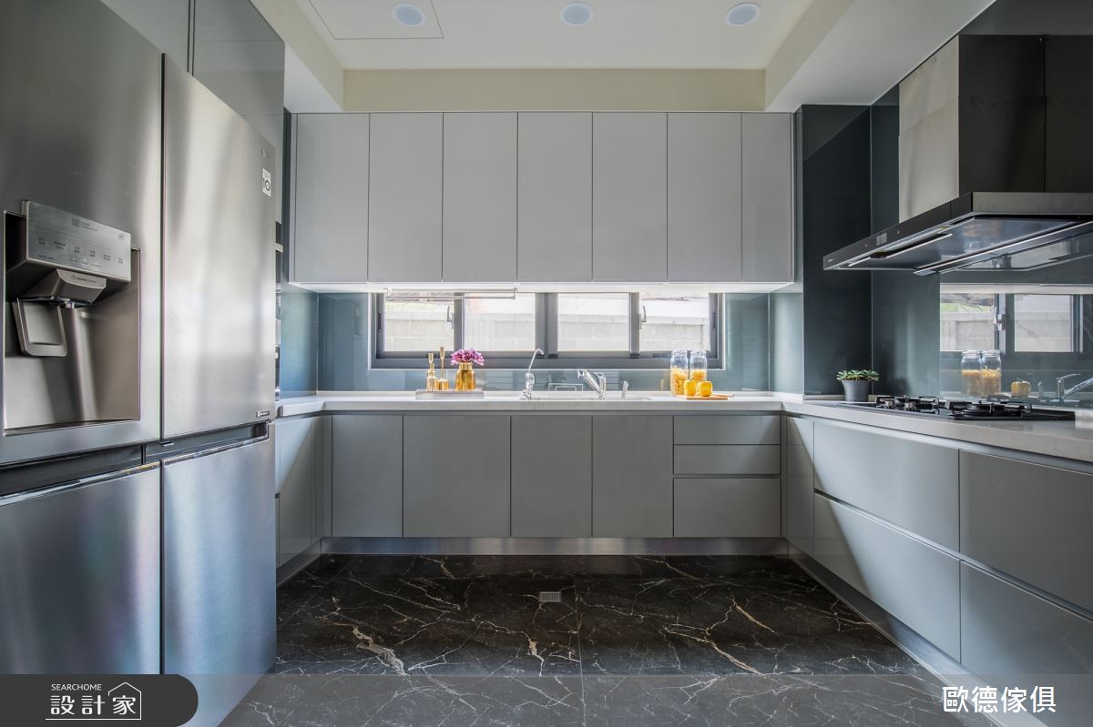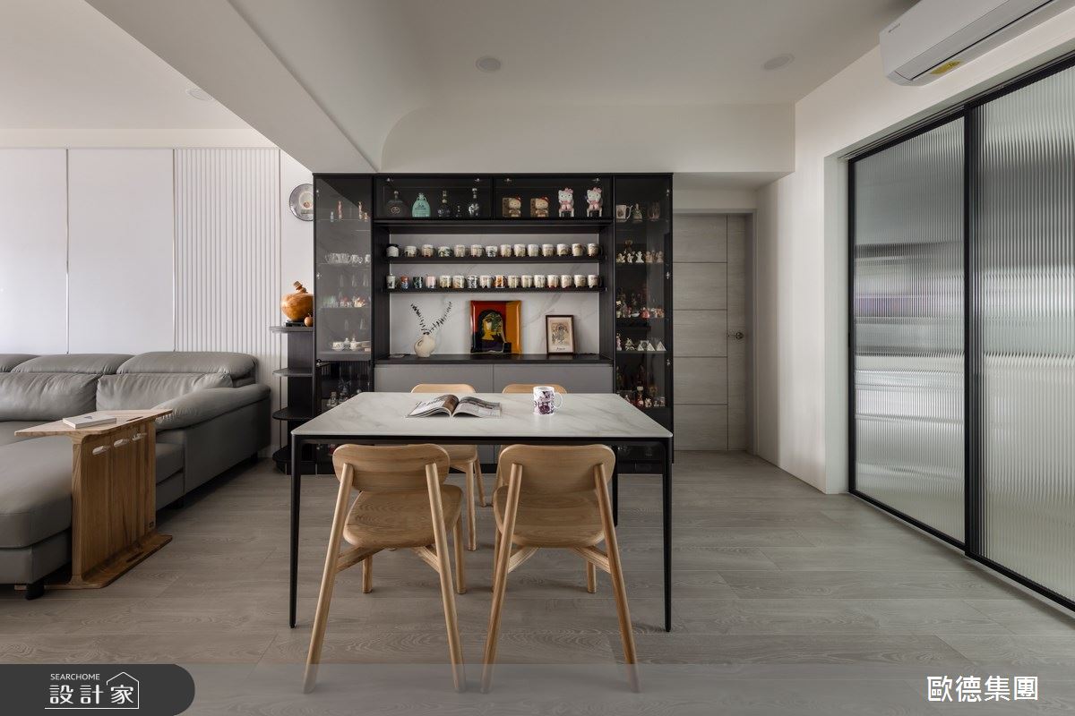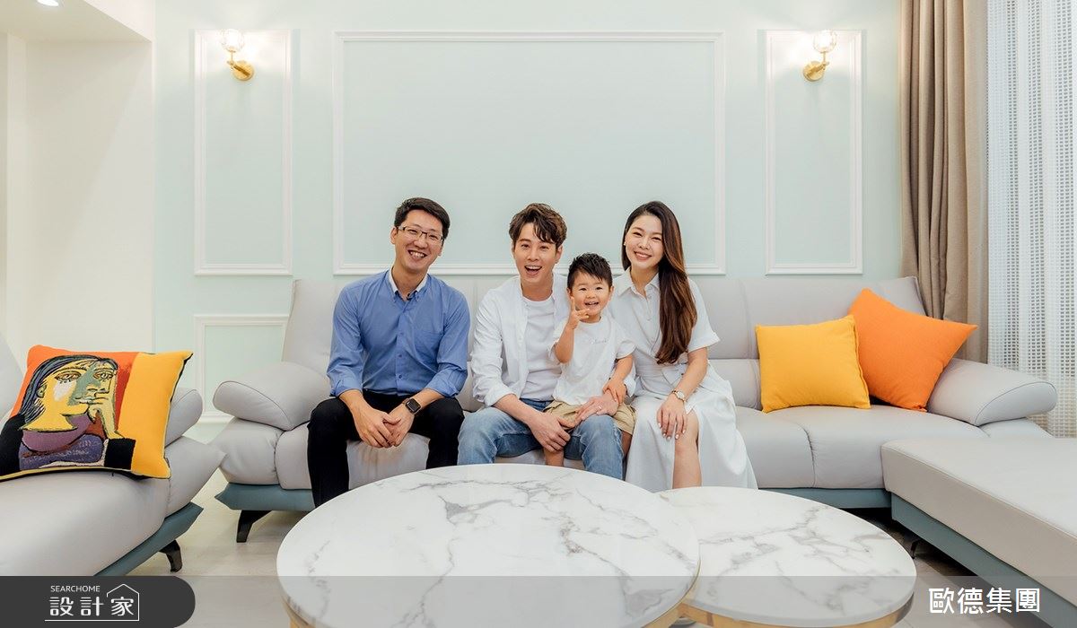 來自歐德傢俱設計團隊的60坪現代風住宅案,屋主一家人共有2位大人、2位小孩,是一間單層新成屋(5年以下)的三房格局,設計師藉由建材以木地板(超耐磨)、細鋁框玻璃推拉門、大理石、油漆跳色、木皮的搭配應用,實現一家人的理想生活。