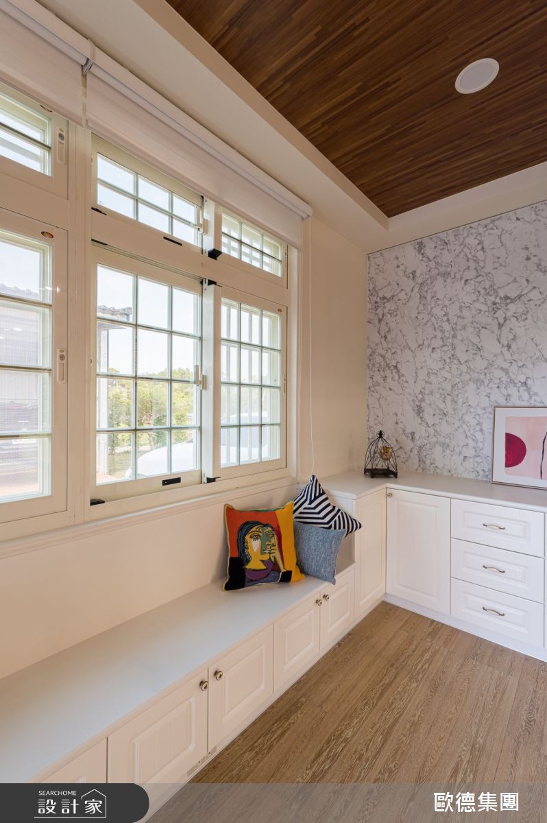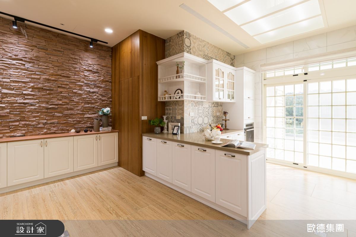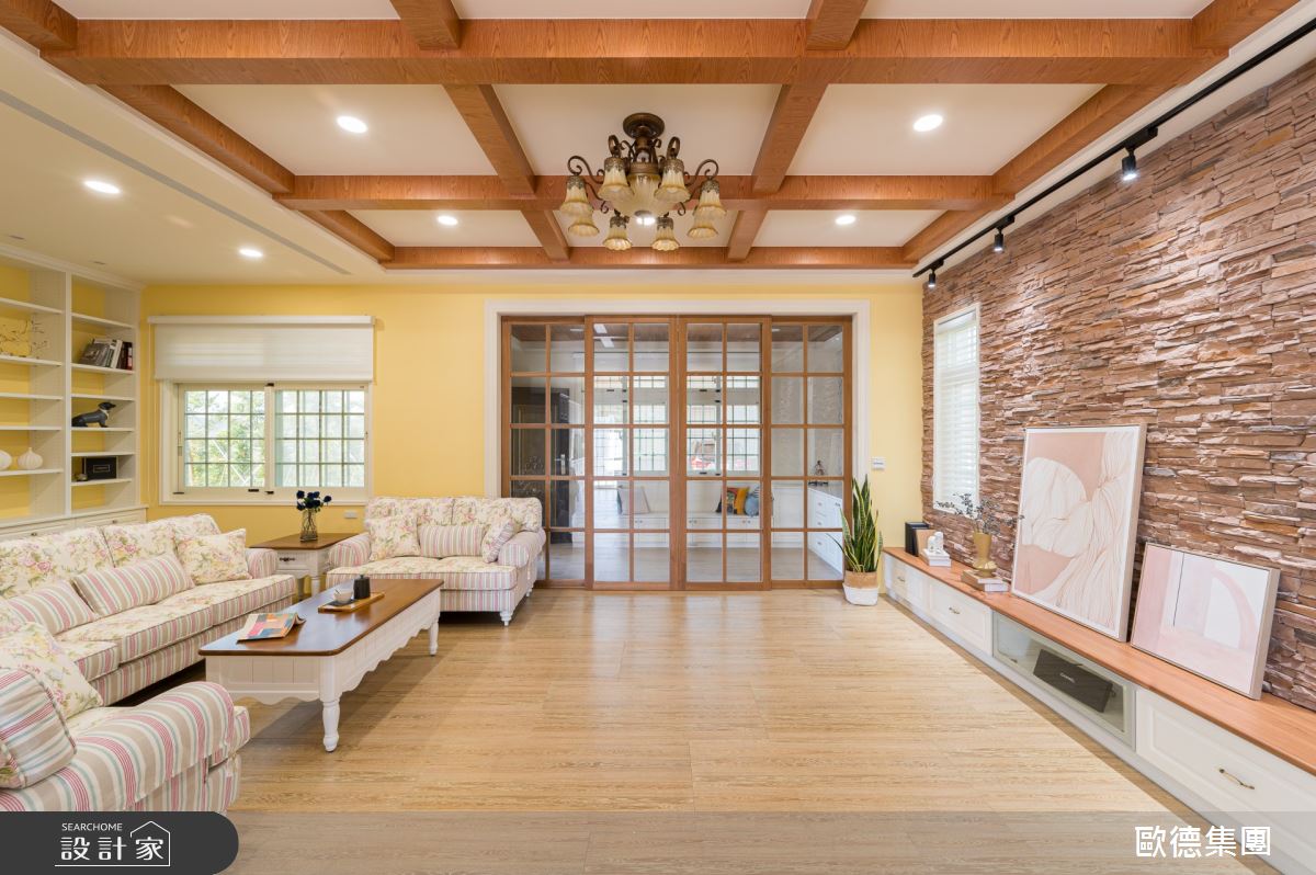 由歐德傢俱設計團隊精心規劃的61坪三房住宅空間,家庭成員一共有4位大人。因應屋主需求,設計師運用鄉村風作為主軸,搭配歐德系統傢俱、板岩文化石、木紋磚、花磚、玻璃,打造全家人的夢想家居。