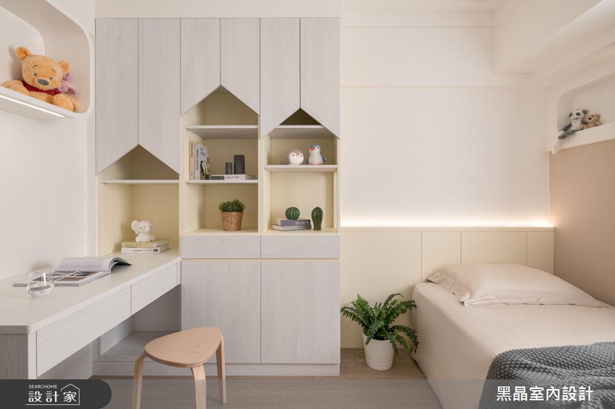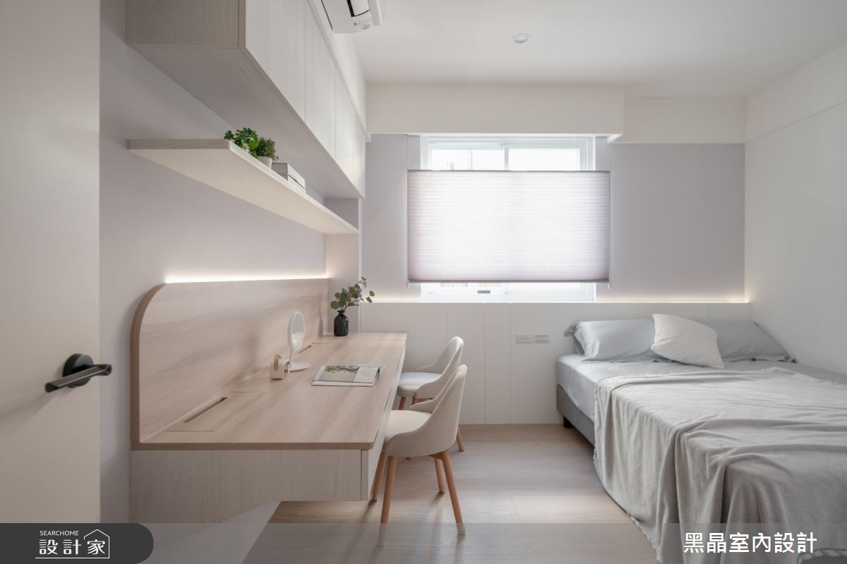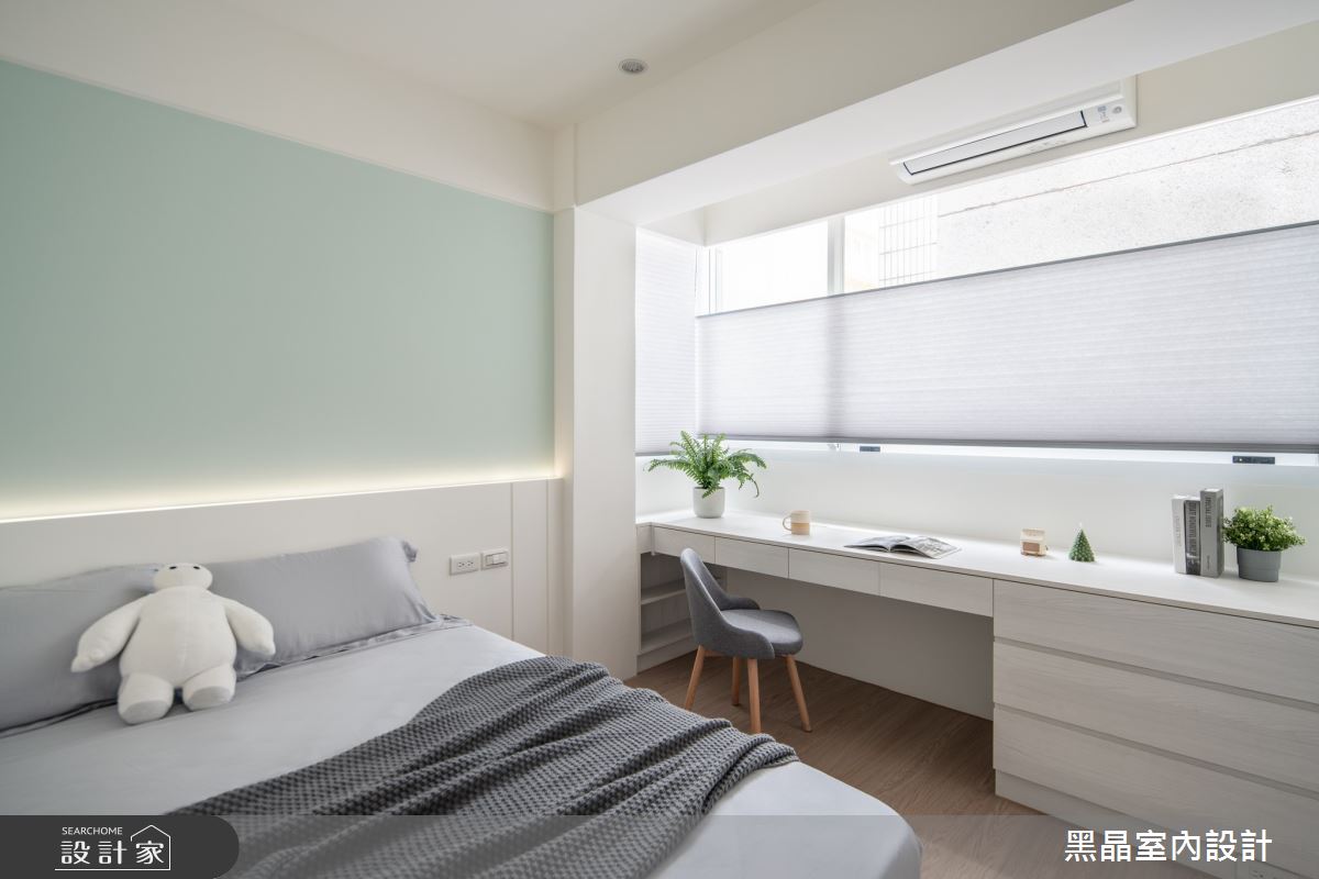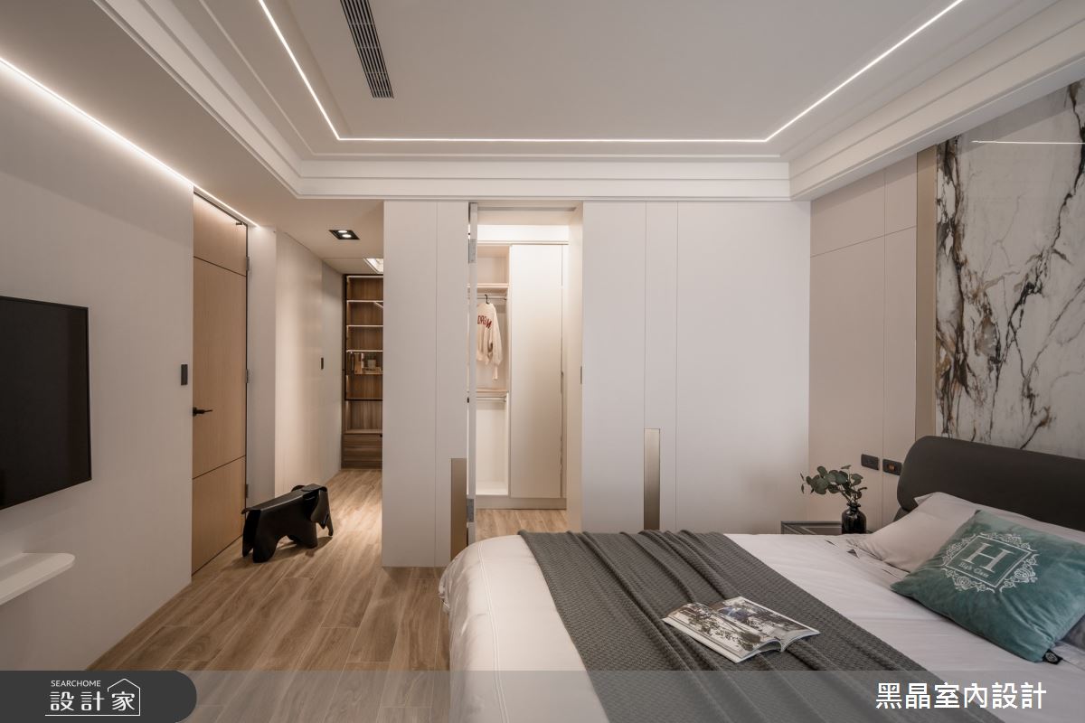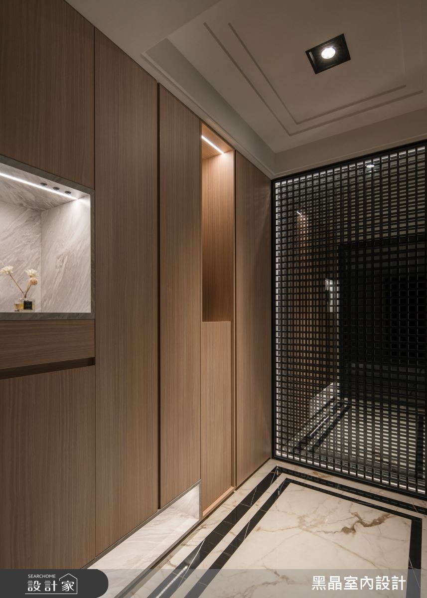 黑晶室內設計以乳膠漆、木紋磚、鐵件、烤漆、進口磁磚、美耐板、系統櫃、黑鏡、明鏡、長紅玻璃、烤漆玻璃、馬來漆、SPC石塑地板的搭配應用,呈現現代風居家氛圍,將此間14.5坪、兩房、單層、新成屋(5年以下)打造成舒適愜意的家庭空間,完成2位大人全家人的夢想之居。