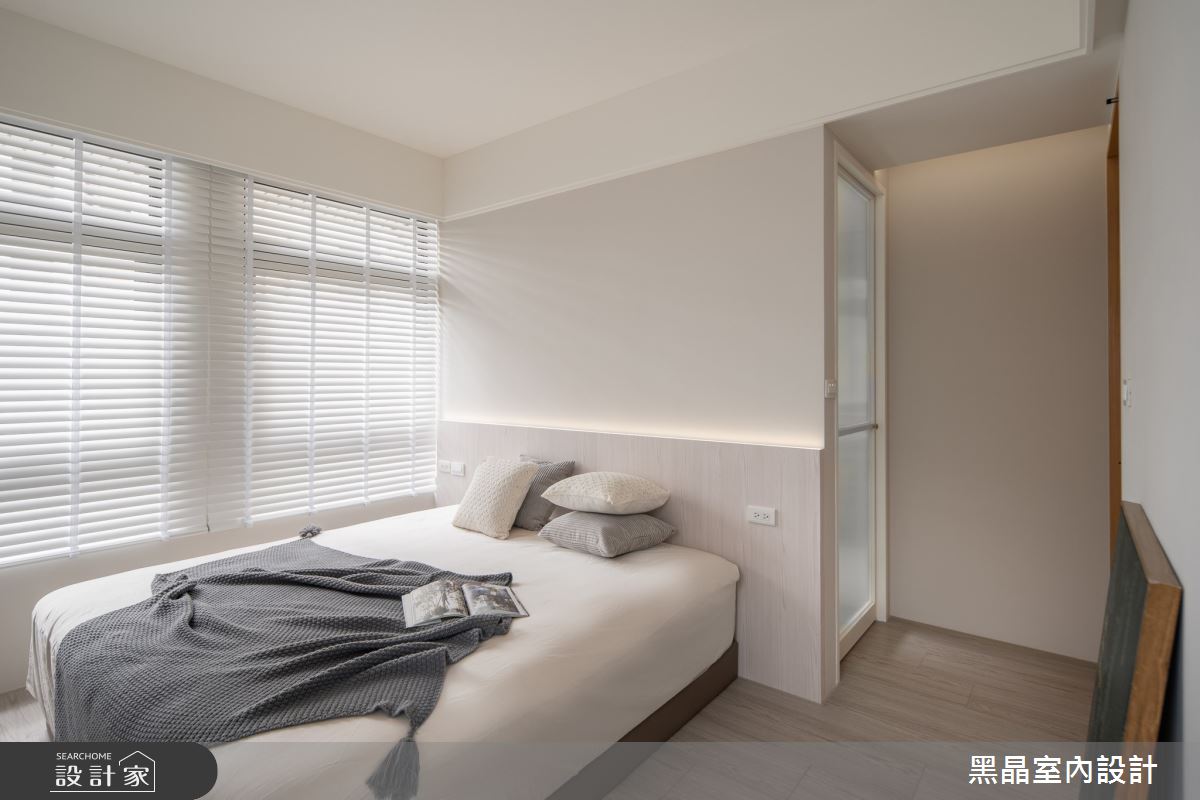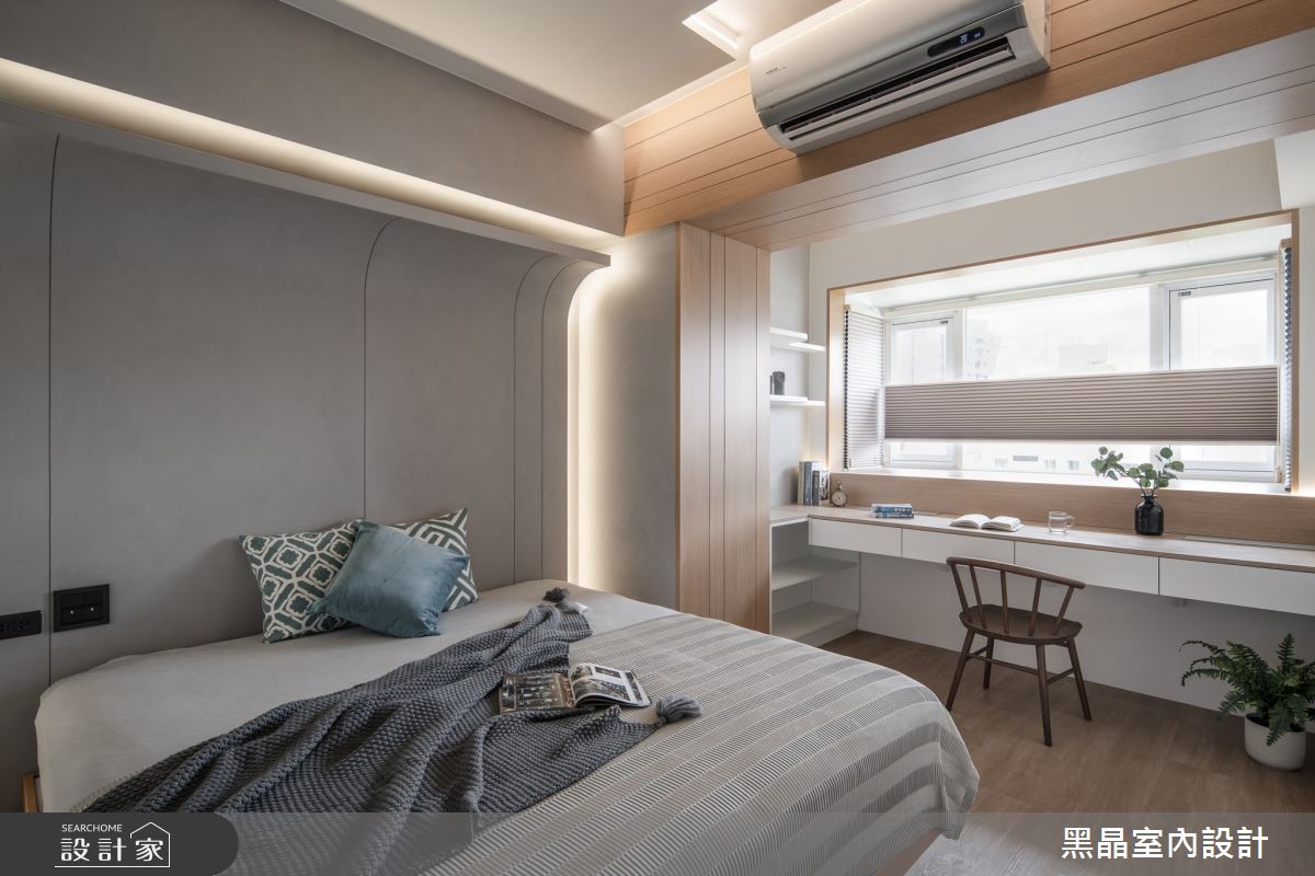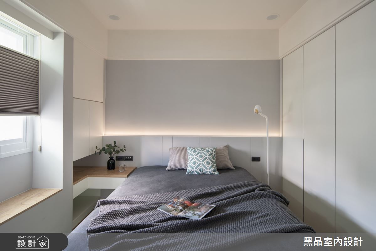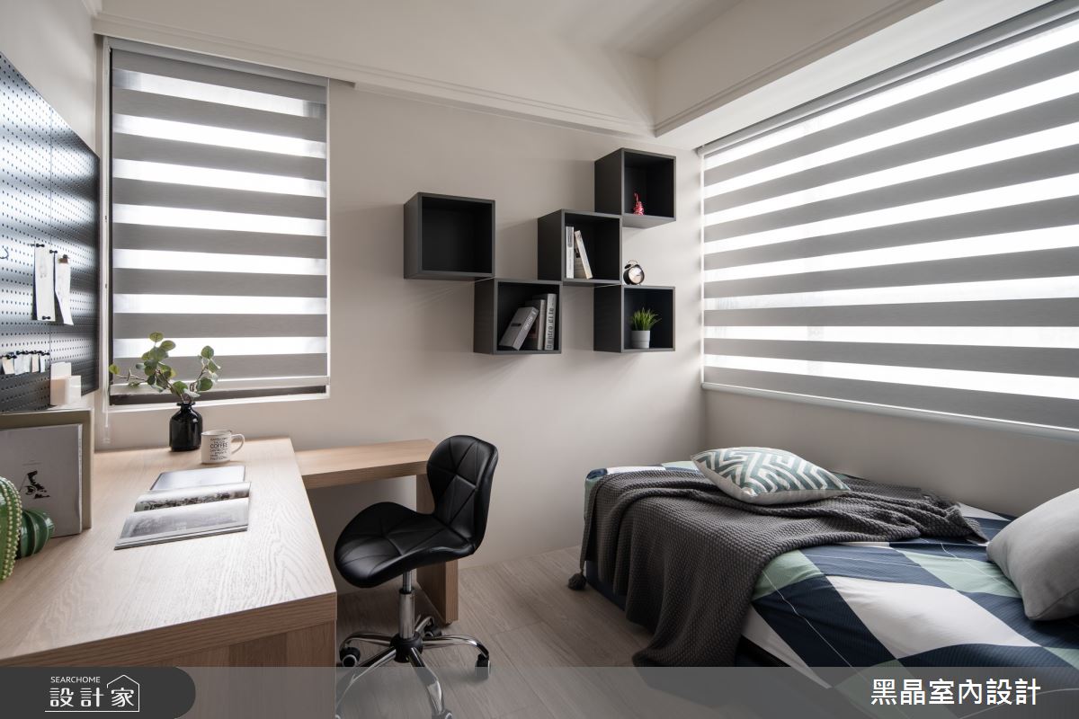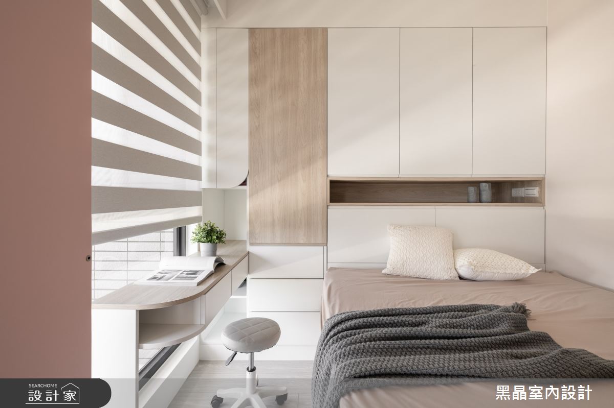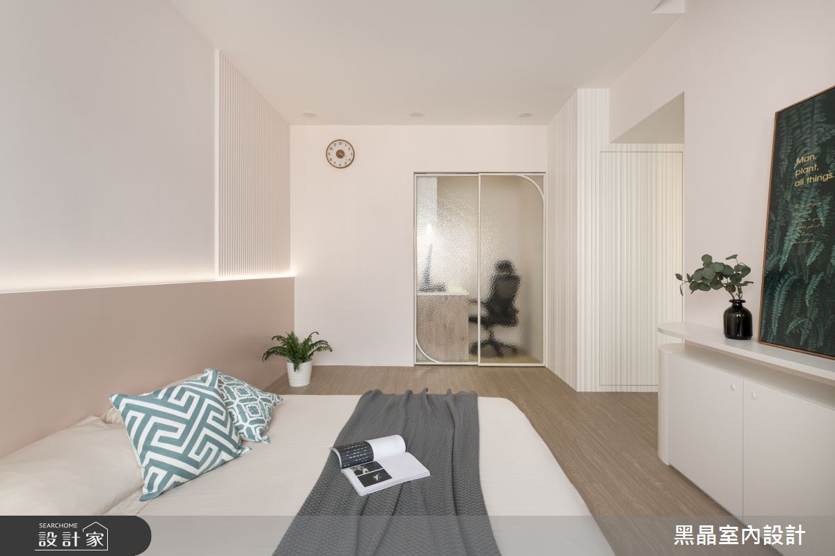 黑晶室內設計以乳膠漆、木紋磚、鐵件、烤漆、進口磁磚、美耐板、系統櫃、黑鏡、明鏡、長紅玻璃、烤漆玻璃、馬來漆、SPC石塑地板的搭配應用,呈現現代風居家氛圍,將此間14.5坪、兩房、單層、新成屋(5年以下)打造成舒適愜意的家庭空間,完成2位大人全家人的夢想之居。