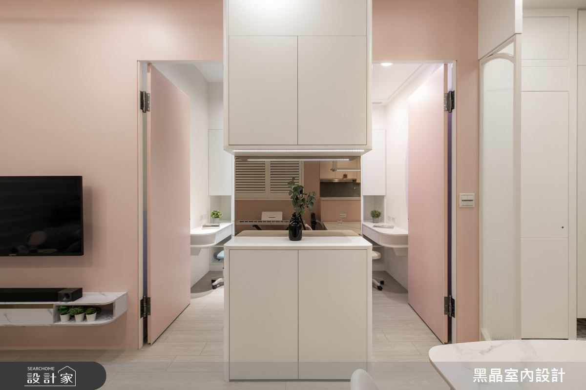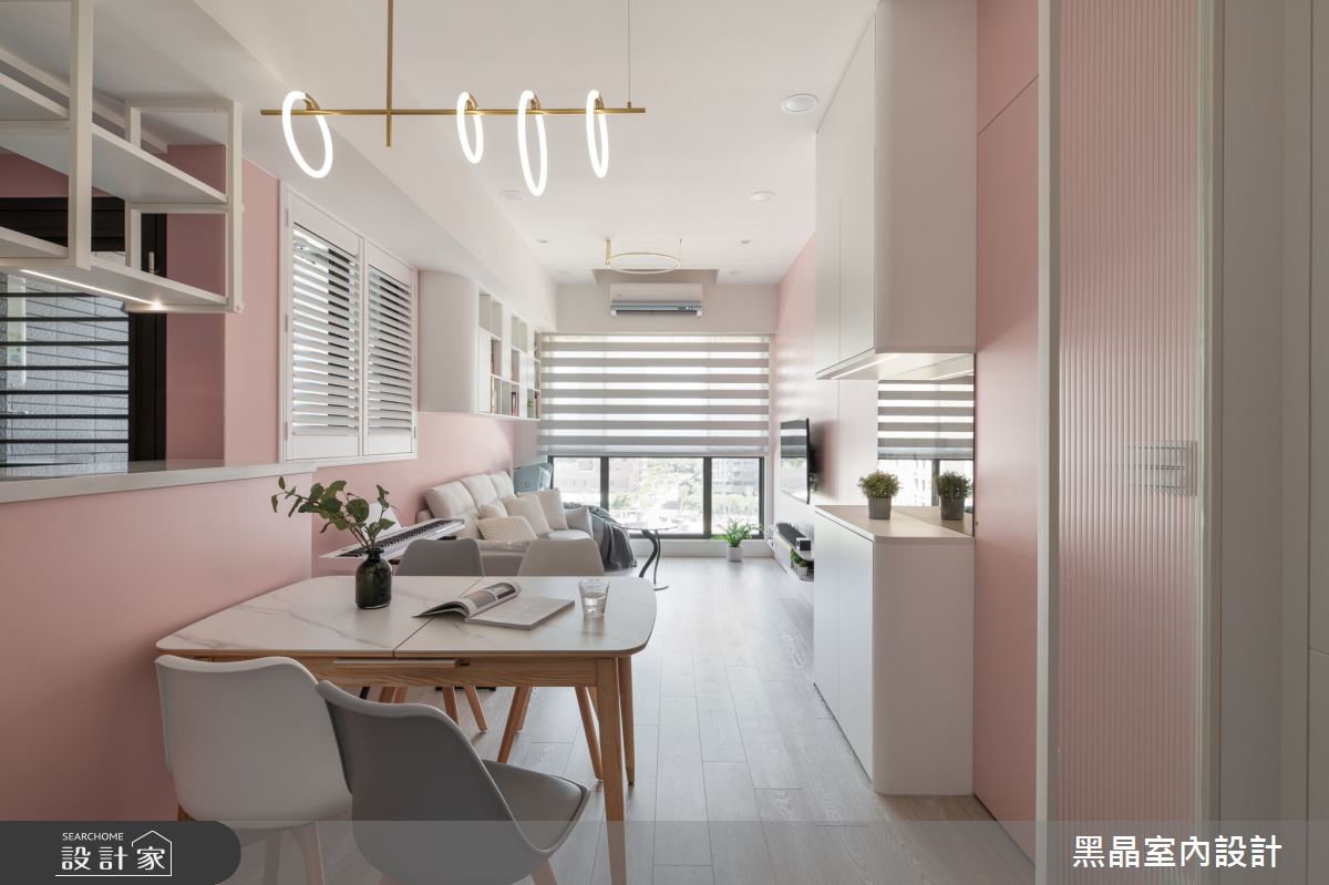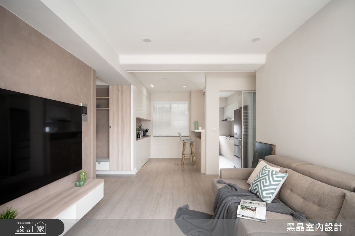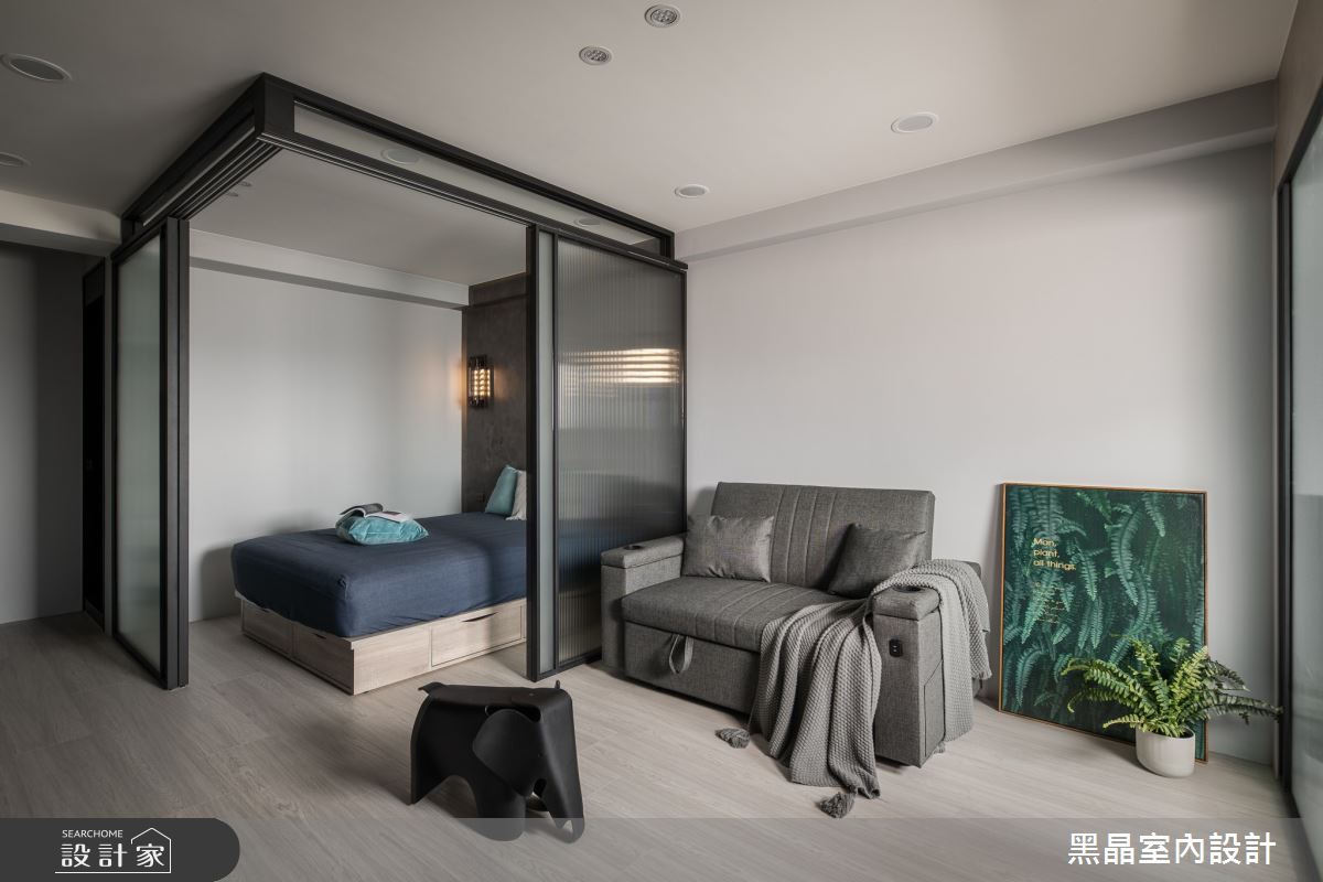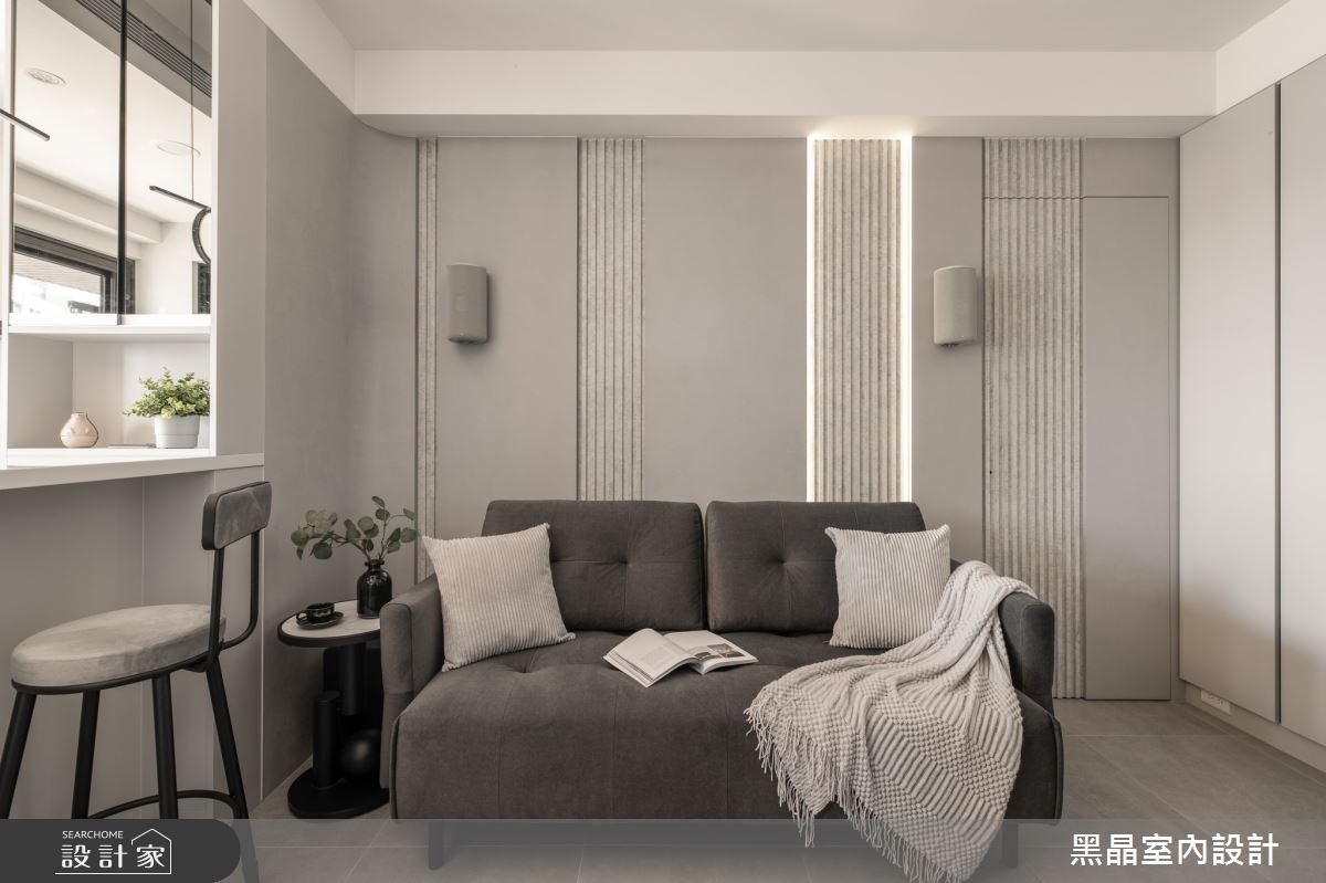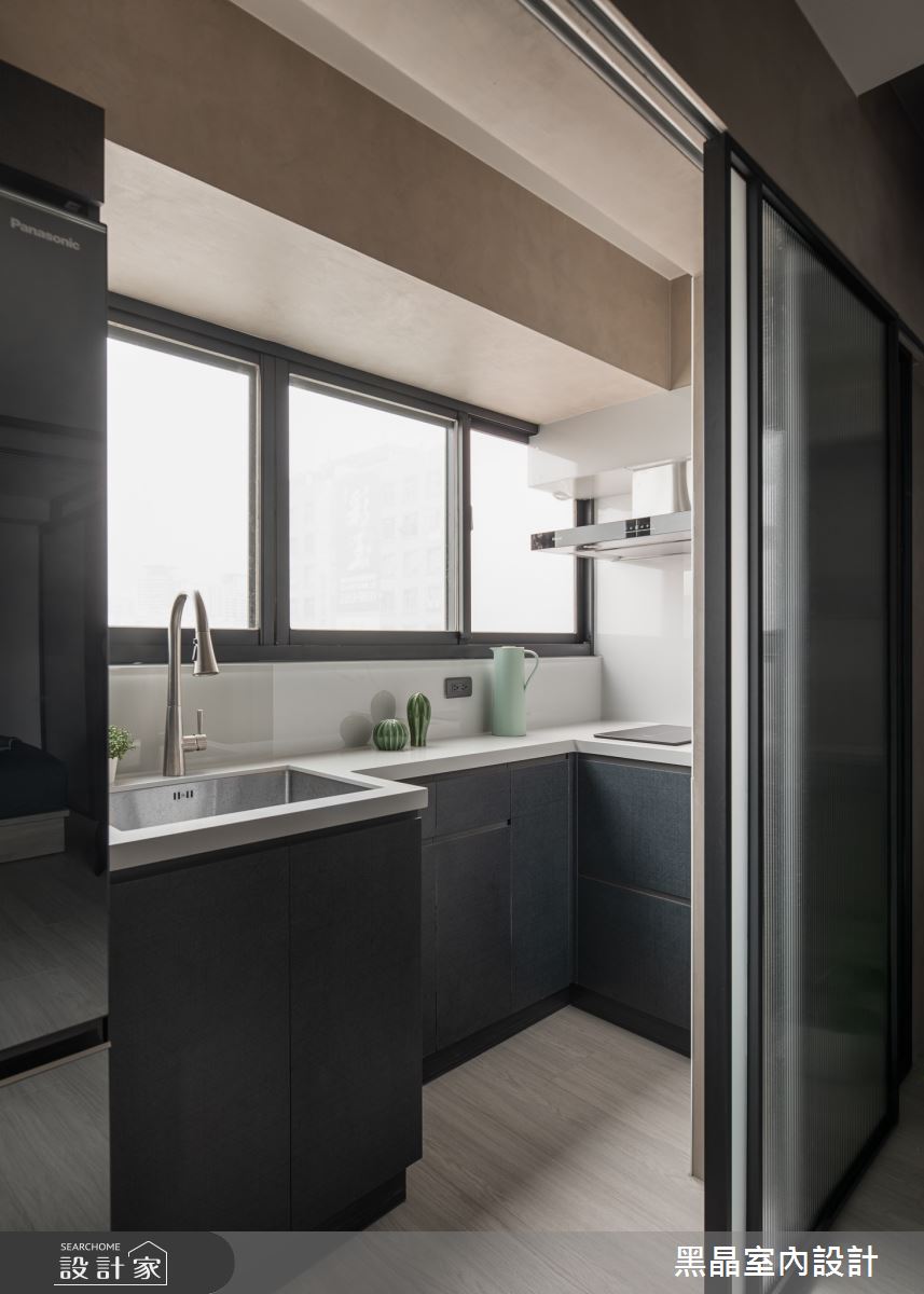 來自黑晶室內設計的10坪現代風住宅案,是一間單層老屋(16~30年)的一房格局,設計師藉由建材以乳膠漆、鐵件、烤漆、進口磁磚、系統櫃、長虹玻璃、司曼特、spc石塑地板、線燈的搭配應用,實現一家人的理想生活。
