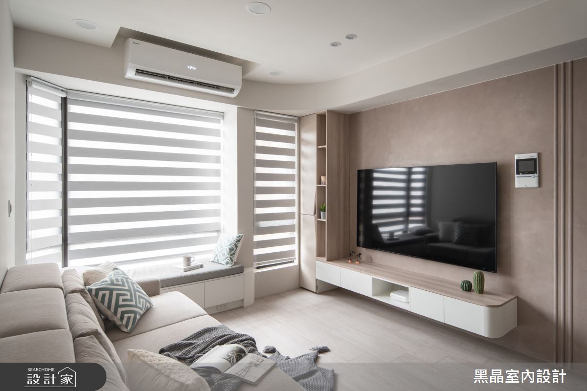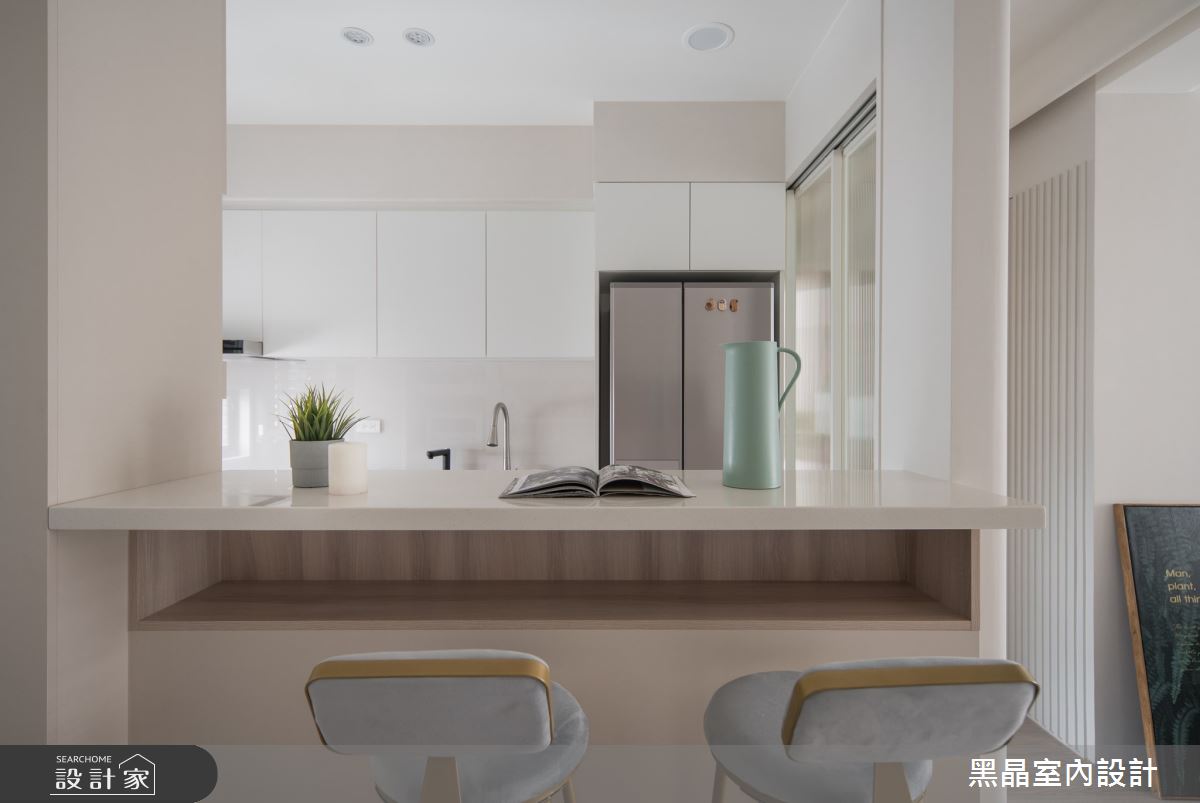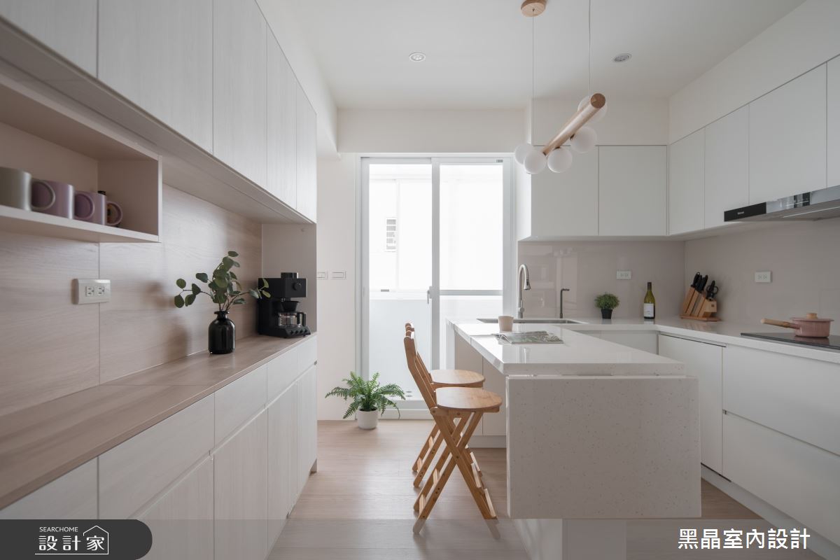 黑晶室內設計以鐵件、烤漆、人造石、進口磁磚、系統櫃、長紅玻璃、烤漆玻璃、乳膠漆、司曼特、SPC石塑地板的搭配應用,呈現溫潤奶茶風居家氛圍,將此間22.5坪、兩房、單層、老屋(16~30年)打造成舒適愜意的家庭空間,完成2位大人、1位小孩全家人的夢想之居。