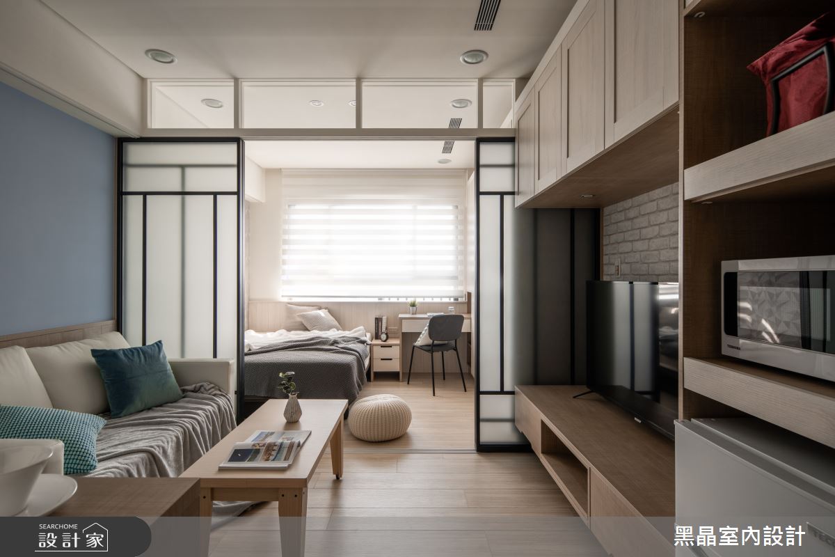 來自黑晶室內設計的7坪北歐風住宅案,是一間套房新成屋(5年以下)的一房格局,設計師藉由建材以超耐磨木地板、鐵件、系統板材的搭配應用,實現一家人的理想生活。
