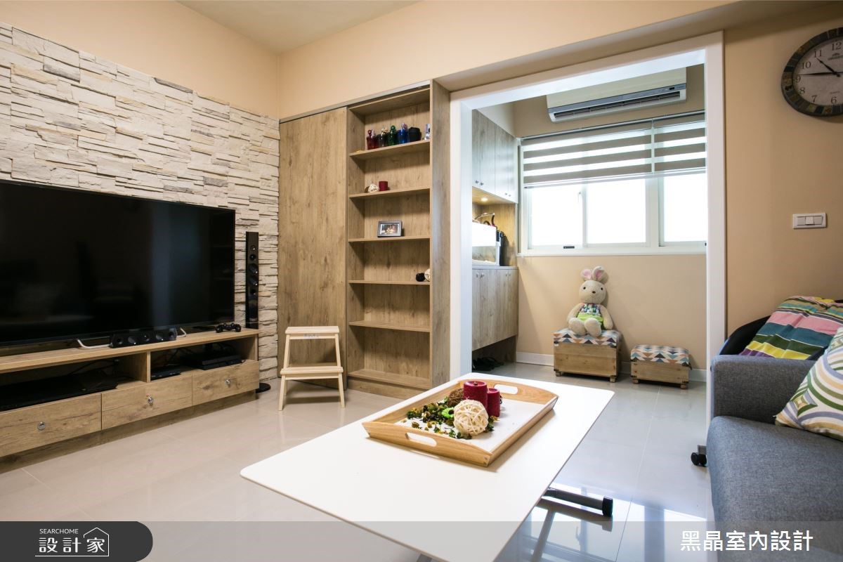 以簡約的北歐風作為空間基底,木紋質感與溫暖的用色鋪敘一室,替老屋賦予嶄新面貌,且增添家的暖度,同時也加強收納機能,滿足生活的實用需求。 客廳裡以綠建材輕質文化石鋪敘電視主牆,再搭配光源的映照,創造出視覺亮點,而石材所流露的粗獷質感,與一旁木紋櫃體相互陪襯,替簡潔的空間注入自然感受,而跳色抱枕、趣味玩偶的點綴,則增添活潑氣息。串聯私領域的廊道上,持續延伸公領域的視覺用色,且利用畫作裝飾,營造出人文的雅緻風情;臥室空間裡,地面鋪上超耐磨木地板,收納櫃體也利用木作打造,大地色系的運用,醞釀清新自然的氛圍。 小編的最愛 大量的大地色彩妝點一室,替簡約的北歐風挹注溫馨情誼,加上軟件、畫作的妝點,感染繽紛氣息。