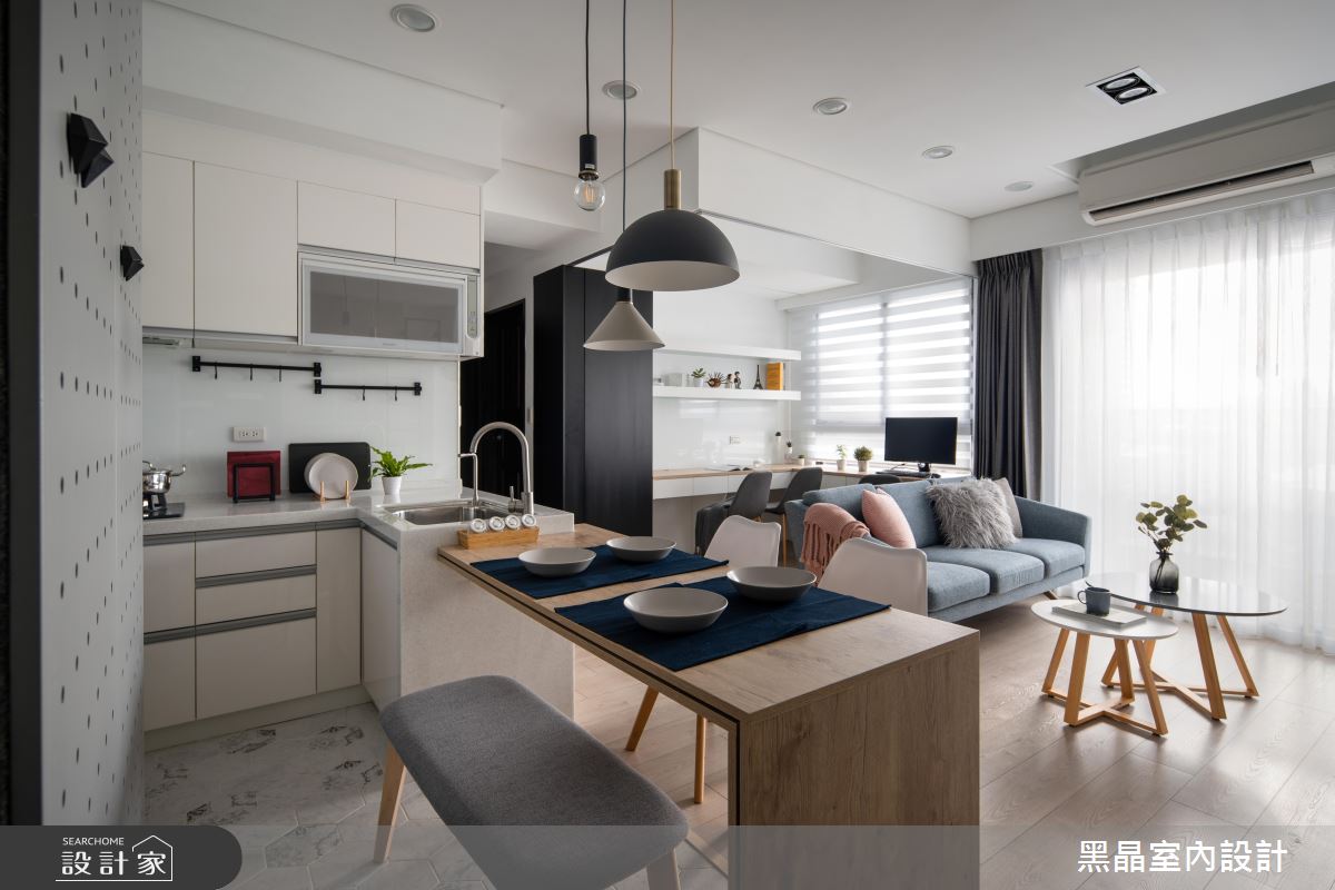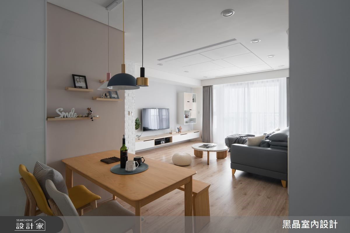 設計師透過格局的重塑,啟動光線、空氣的通透感與流動性,並釋出開闊視野,同時以北歐風作為底調,選用輕盈無壓的材質及色系,打造出令人嚮往的北歐風住宅視野,快跟著小編一起來看看吧! 入口玄關,於地坪鋪陳幾何跳色花磚,搭配木質ㄇ字形造型門框,形成步入客餐廳的空間導引;客廳內,加入白色文化石牆與白色天花,構成明朗清爽的情境,既有的將書房牆面則換上玻璃,使書房可與客廳產生連結,運用一體成形的曲面玻璃,打開居家的通透感;同時規劃開放式廚房,於地坪作出六角磚轉換,不但界定場域分屬,也讓整理上更為輕鬆便利,廚具中肚的設計,則大膽使用300 x 100cm無接縫進口磁磚,以大理石花紋構成廚房亮點,冰箱面板也一併加以改造,形成相互呼應的小巧思;主臥,大面積使用莫蘭迪色調,於床頭兩側加入鹿角小燈,形成帶有線條感的裝飾選物,調和出放鬆的居家氛圍,且利用隱藏拉門隔出更衣室,讓屋主夫妻擁有日常衣物的收納空間! 小編的最愛 小孩房的設計延續公領域元素,以白色與木質調為主,加上童趣裝飾及擺設,提升整體的活潑氣息!