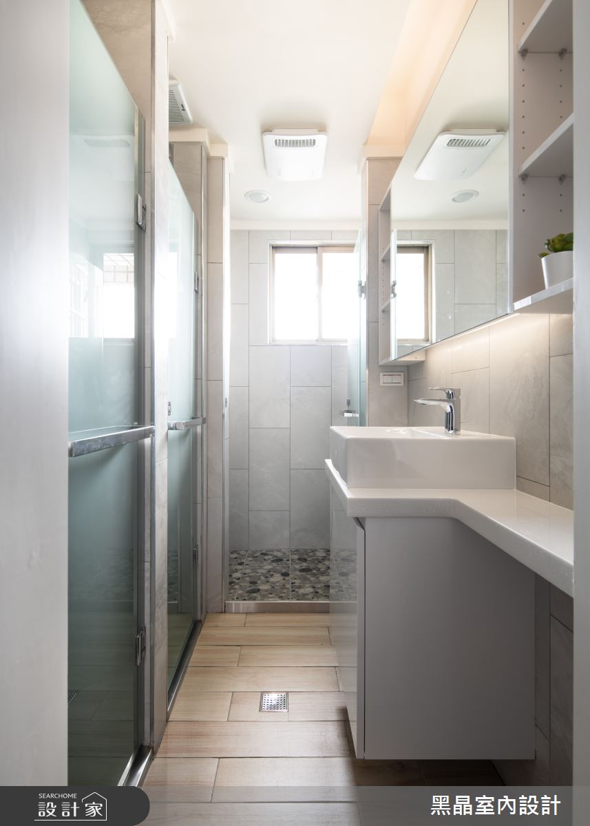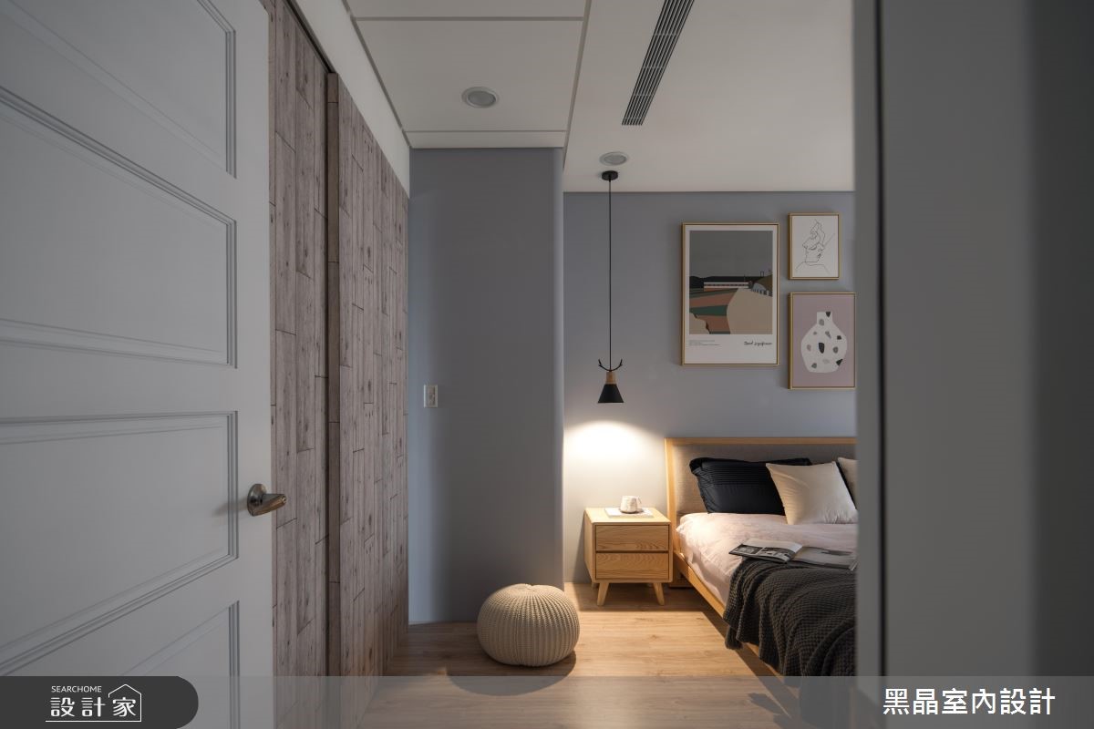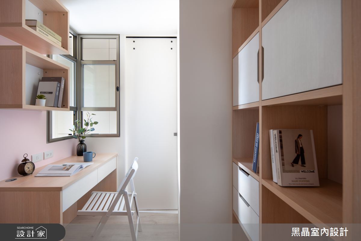 18坪、20年的公寓住宅空間,原格局分割零碎,導致無法妥善運用空間,設計師發揮巧思,打造出三房一廳,注入灰、白、木質三種色系,讓一家四口都迷上簡約而不失溫馨的居家環境。 利用暖灰色系的清水模,打造大篇幅的電視主牆,接著與白色、木質交錯排列,妝點出共通又有變化的牆面,並隱藏臥房門片,以天然建材的質地,傳達自然清爽的氛圍,更勾勒出一絲簡潔俐落。寬敞通透的公領域,於牆面嵌入展示收納櫃,與抽象畫作、深色布沙發,描繪出一幅和諧迷人的居家端景;另一側在百葉窗與日光烘托下,搭配溫潤木質臥榻,適度地為空間留白,使人沉浸在輕鬆愉悅的無壓狀態。 小編的最愛 兩間次臥以粉色系為主牆面,同時不忘考量收納機能,運用不規則的書櫃層架,化解櫃體的龐大笨重感,維繫輕柔舒適的氛圍,為孩子創造專屬個人的私密空間。