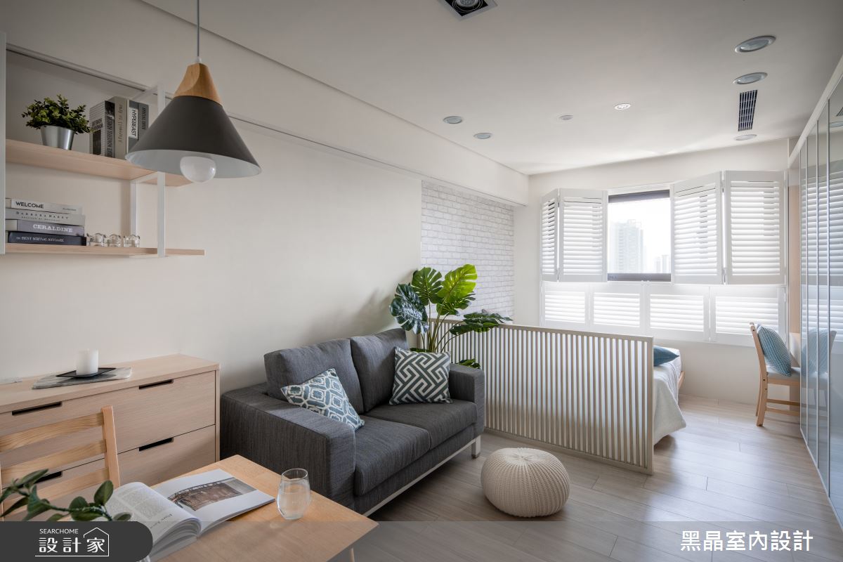 本案為黑晶室內設計的7坪混搭風新成屋(5年以下)設計作品,格局為套房一房的居住空間。全室建材的搭配,應用超耐磨木地板、鐵件,展現溫馨的居家氛圍。