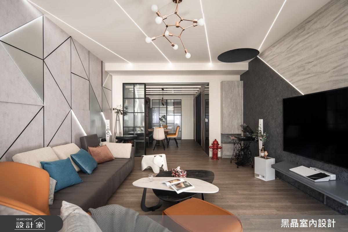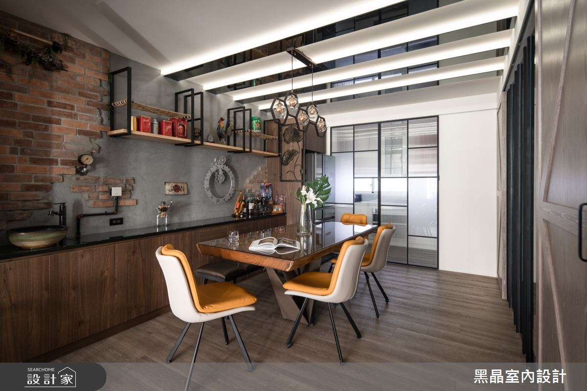 黑晶室內設計以烤漆、磁磚、軌道燈、鐵件玻璃、磁吸式軌道燈、線燈、防水地板的搭配應用,呈現混搭風居家氛圍,將此間37坪、三房、單層、中古屋(5~15年)打造成舒適愜意的家庭空間,完成全家人的夢想之居。