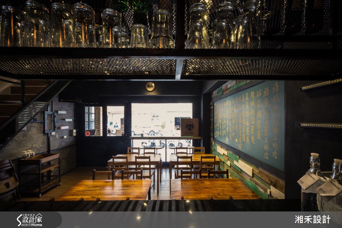湘禾國際設計以鐵件、玻璃、木材、石頭、雷雕木件、特殊塗料的搭配應用,將此間30坪老屋(16~30年)優雅詮釋成舒適愜意的商業空間。