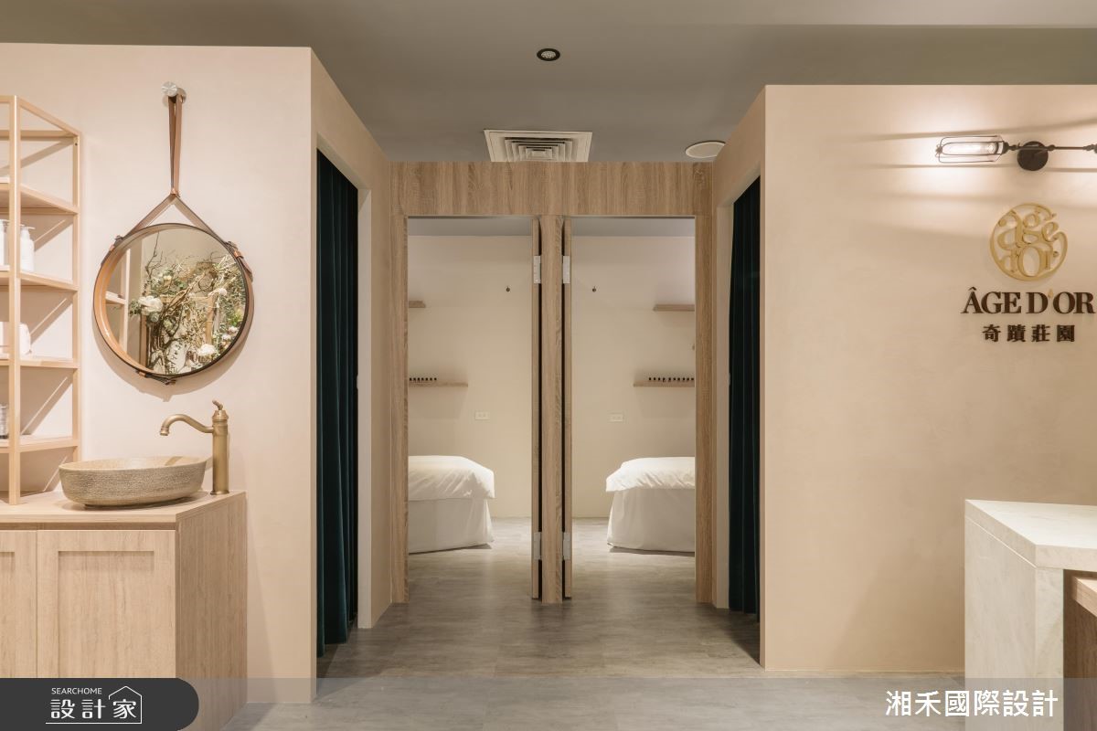 此案為百貨公司中的一個品牌門市,由湘禾國際設計一手擘劃整體空間場域,除了護髮護膚產品外,更推廣優雅健康的生活概念及 SPA 服務,因此設計師摒棄一般專櫃收銀、陳列架、廣告看板等制式套路,而是運用淡粉色、原木色的暖色質地,詮釋每個女人心中帶有夢幻色彩的舒適環境,伴隨浪漫優雅的乾燥花束與香氛香氣點綴其中,吸引著經過的人們來此處感受愜意自在的氛圍。 設計師以回歸本質的純粹,取代繁複精雕的風格設計,也成功創造了吸引人潮注目的場域。店面門市內蘊含許多細節之處,像是復古水龍頭搭配木質洗手槽與圓形掛鏡,細膩烘托屬於仕女獨有的氣質底蘊,另外 SPA 房內的黃銅燈飾既簡約更富含精品質感,呼應空間裡的品味美學。 小編的最愛 粉色空間有如IG網美名店般優柔典雅,搭配乾燥花輕綴色彩,讓空間呈現溫和、放鬆和靜謐的悠然美好。