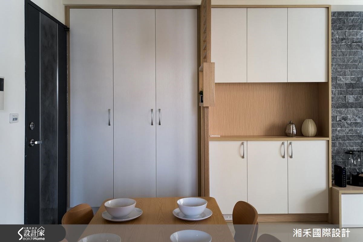 22 坪休閒風住宅,為屋主與孩子的度假基地,從進入空間開始就令人感到放鬆,設計師挹注大量的溫潤木質及日式格柵元素,巧妙地揉合北歐和日式和風,打造出明亮而舒適的居宅空間。 為了不阻擋採光的行進,玄關處運用縱橫交錯的框格格柵,帶來別具溫馨趣味的鏤空端景,朗闊的公共空間,藉由沙發背牆、家具的溫潤木色,搭配櫃體牆面的純粹留白,型塑簡約而極具自然感的北歐基調,深邃的灰質文化石電視牆,則在輕淺的色系中,創造色彩與材質的個性對比。位於餐廳旁的和式空間,具有休憩、閱讀、收納,以及作為臨時客房的多重機能性,並運用日式和紙、拉門等元素,營造道地的日式風情,平日不用時若將門片開放,也能將更多的自然日光,延續至餐廳處,讓空間感更加放大。臥室則以柔和的色系為主,搭配簡約清爽的佈置,形構舒適的睡眠氛圍。 小編的最愛 造型獨特的玄關格柵,不僅保留了明亮的光感,更巧妙地結合穿鞋椅和展示平檯的功能,帶來溫馨而實用的功能性。