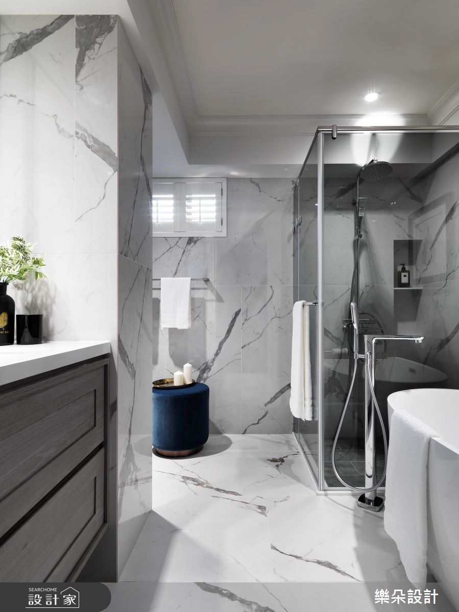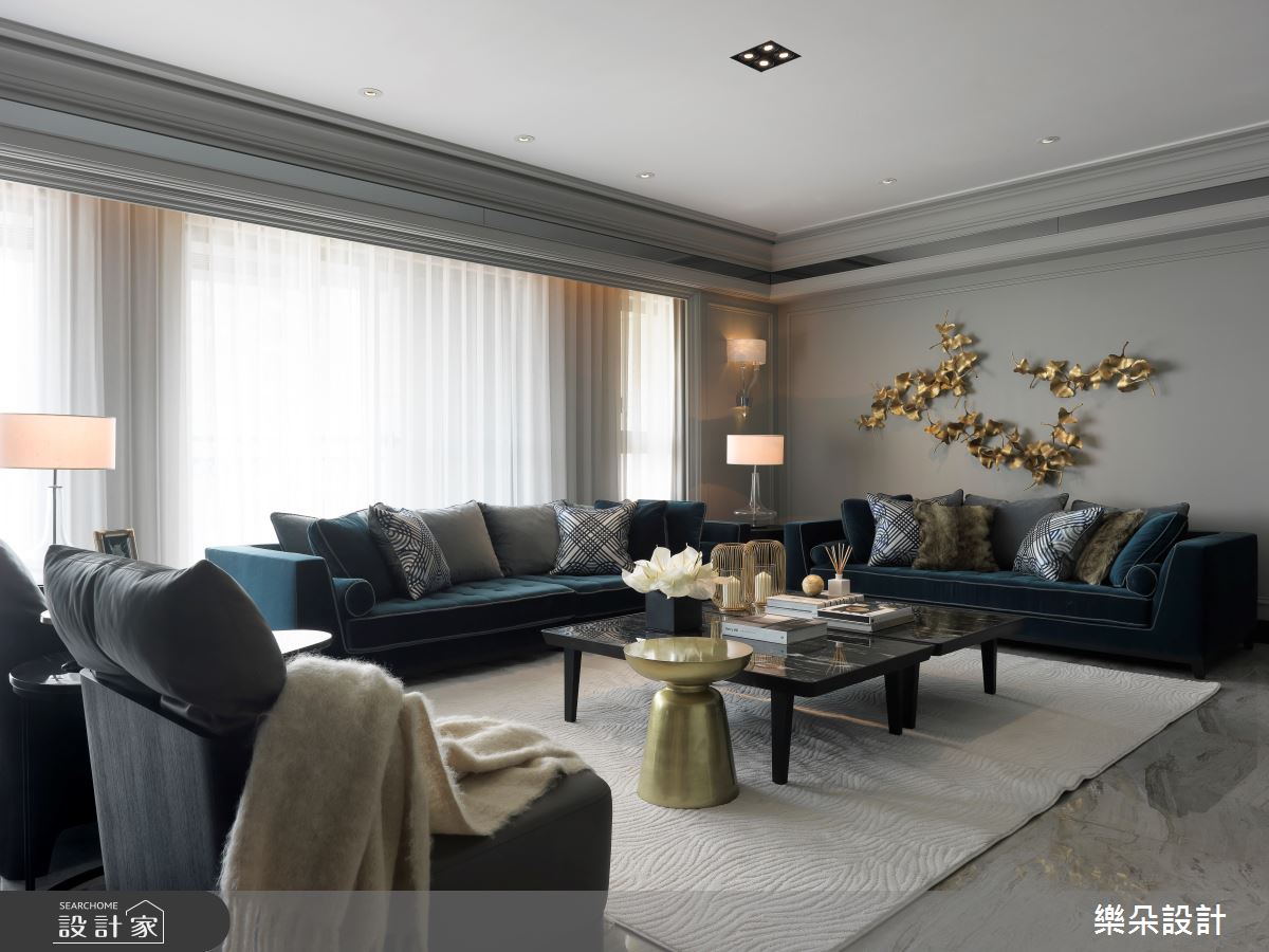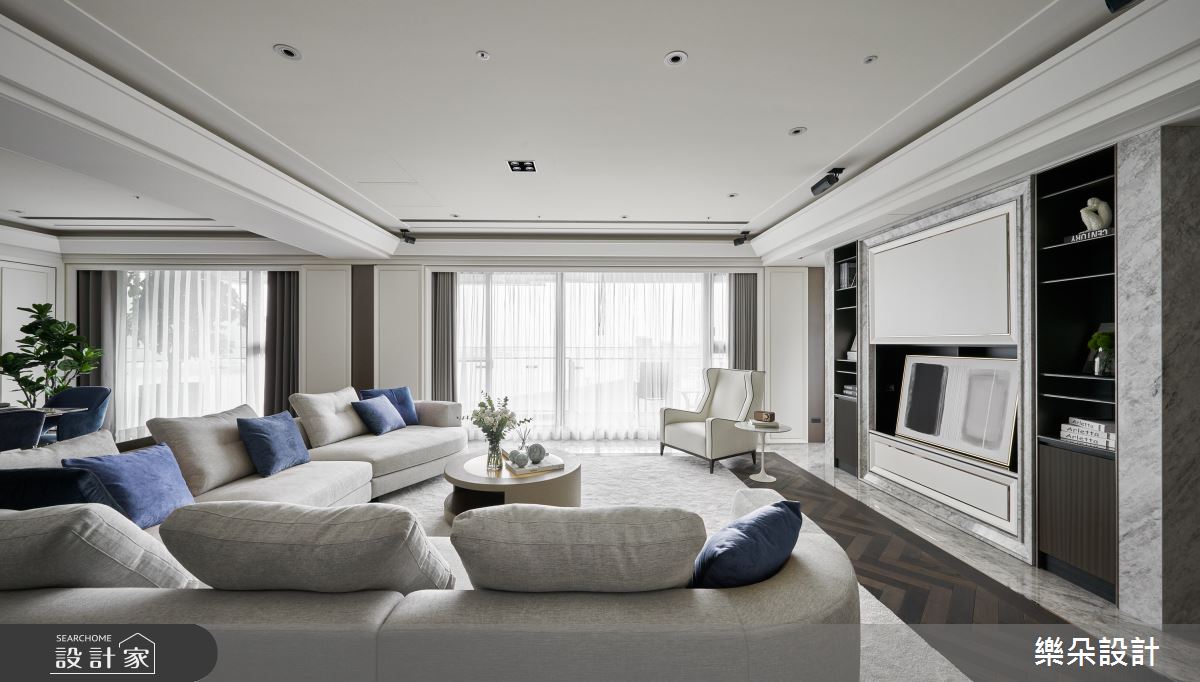 本案為樂朵室內設計的51坪新古典毛胚屋設計作品,格局為單層三房的居住空間。居住成員包含2位大人、2位小孩。全室建材的搭配,應用乳膠漆、壁紙、海島型木地板、木地板、石英磚/拋光石英磚、鐵件、灰鏡、茶玻、鍍鈦金屬、木作貼皮、烤漆、鋼刷木皮、大理石、磁磚、賽麗石、石材、繃布、線板,展現溫馨的居家氛圍。
