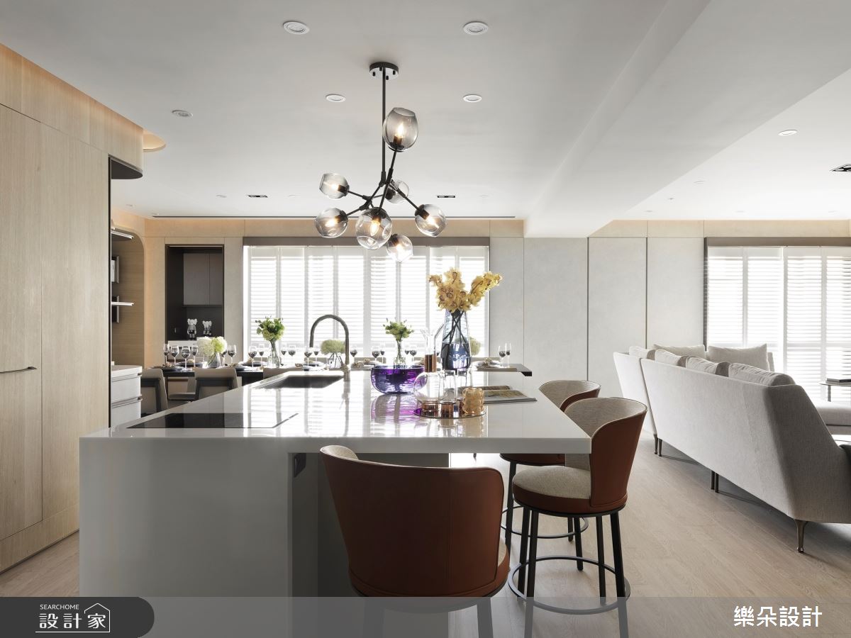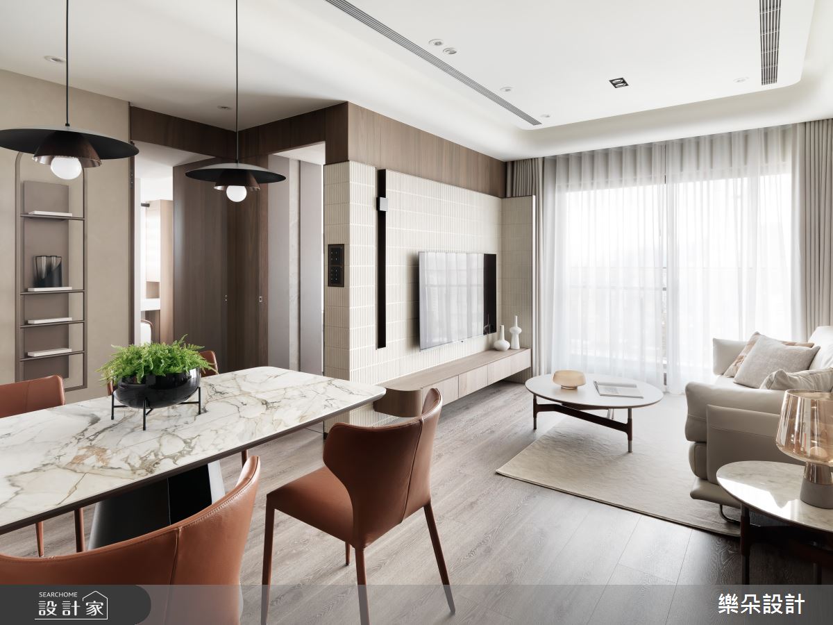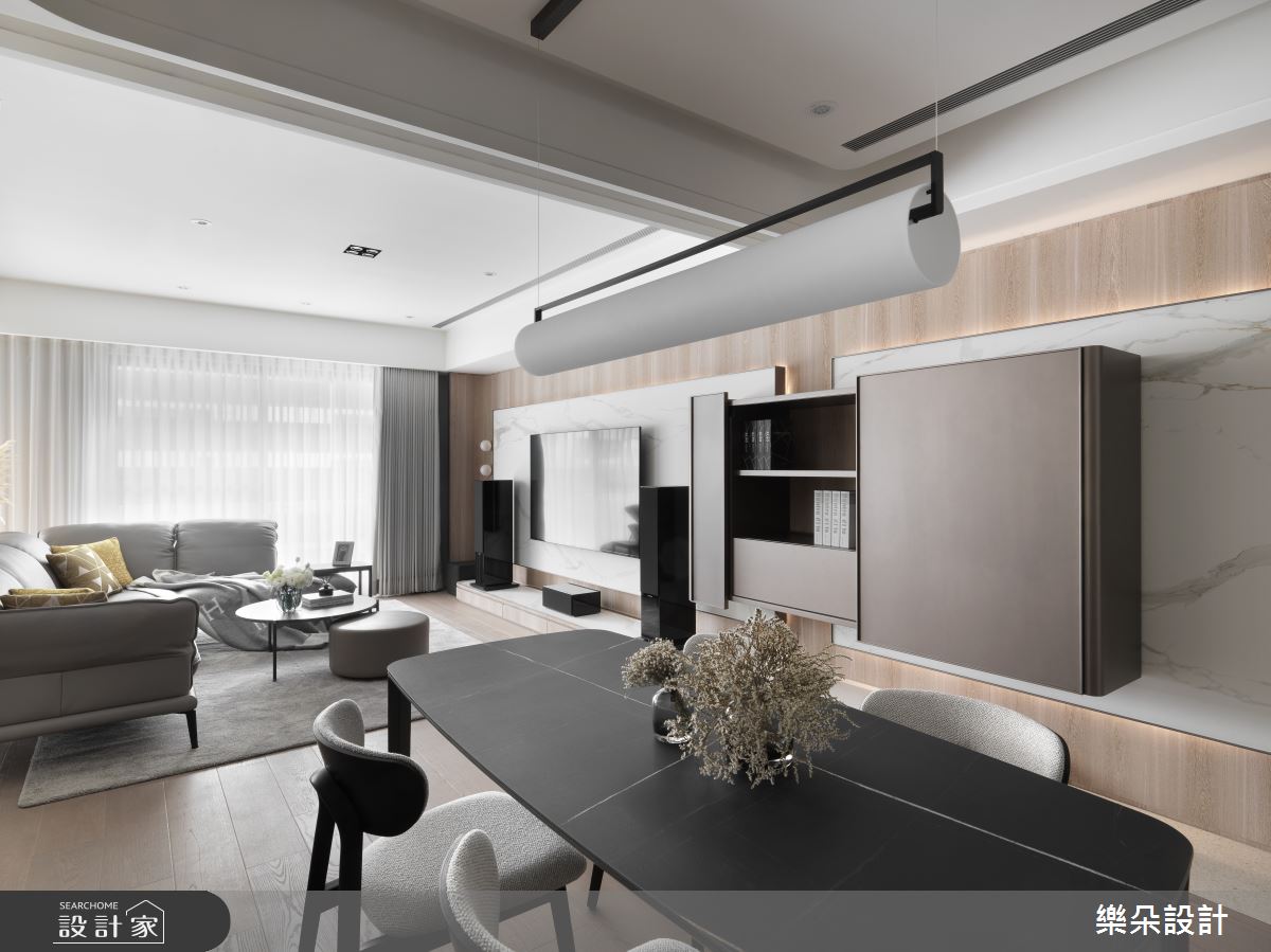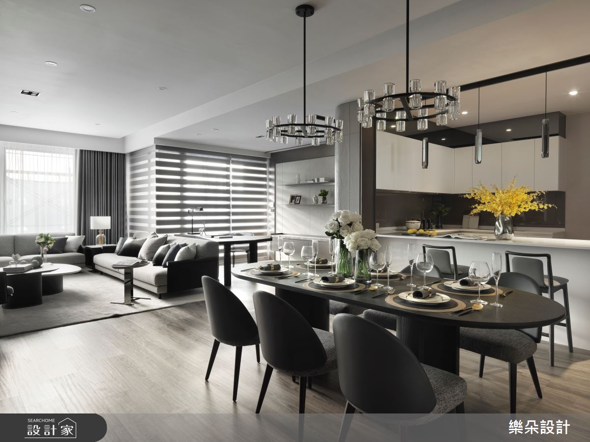 來自樂朵室內設計的62坪現代風住宅案,屋主一家人共有3位大人,是一間單層新成屋(5年以下)的兩房格局,設計師藉由建材以油漆、壁紙、不鏽鋼、鐵件、茶鏡、系統板材、賽麗石、噴漆、薄板磁磚的搭配應用,實現一家人的理想生活。