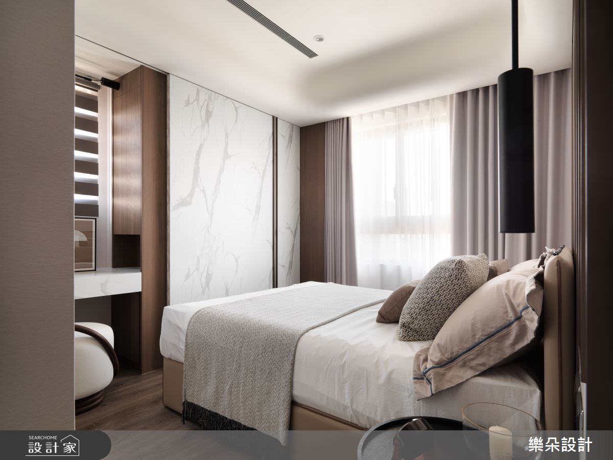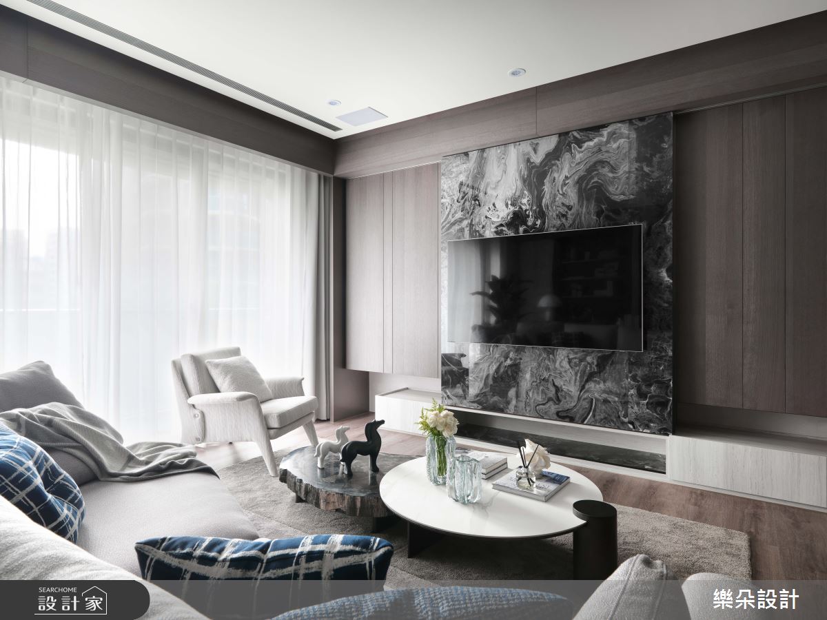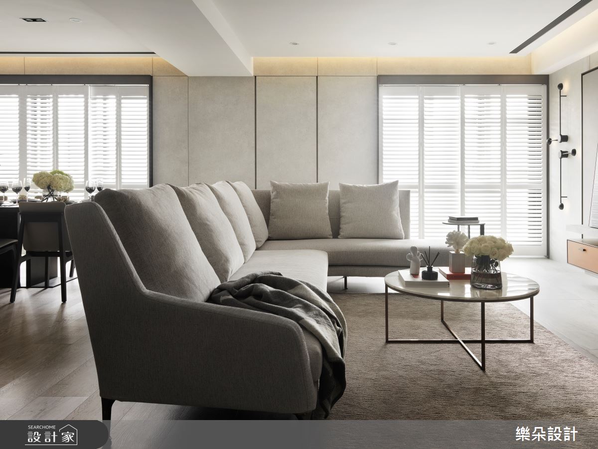 本案為樂朵室內設計的90坪現代風新成屋(5年以下)設計作品,格局為單層三房的居住空間。全室建材的搭配,應用壁紙、超耐磨木地板、鐵件、灰鏡、鍍鈦金屬、木作貼皮、大理石、賽麗石、噴漆,展現溫馨的居家氛圍。