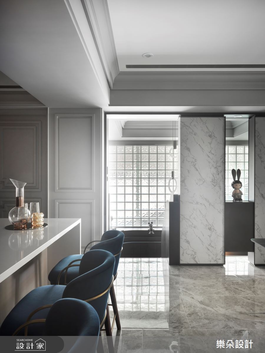 來自樂朵室內設計的45坪新古典住宅案,屋主一家人共有2位大人、2位小孩,是一間單層老屋(16~30年)的三房格局,設計師藉由建材以壁紙、大圖輸出、超耐磨木地板、鐵件、灰鏡、烤玻、鍍鈦金屬、烤漆、系統板材、大理石、磁磚、木百葉、人造石、賽麗石、線板、噴漆的搭配應用,實現一家人的理想生活。