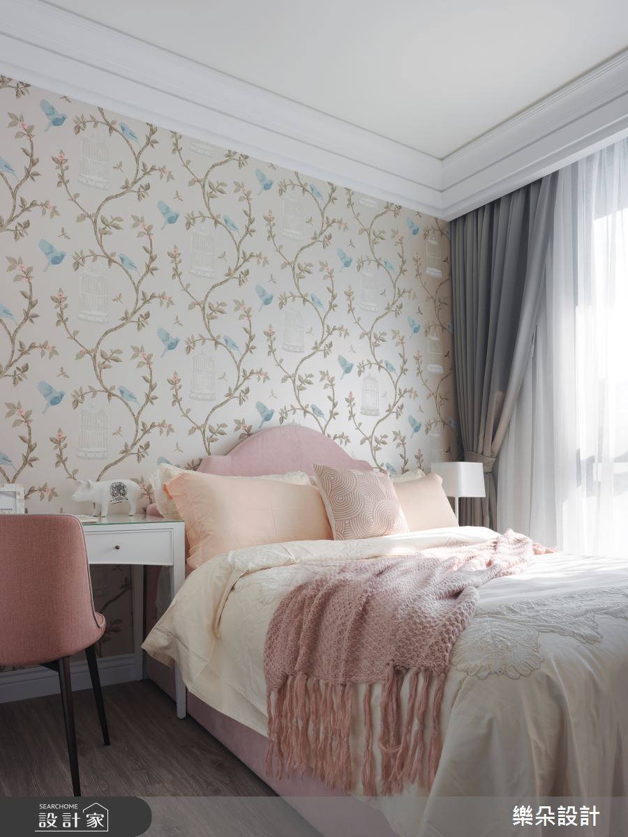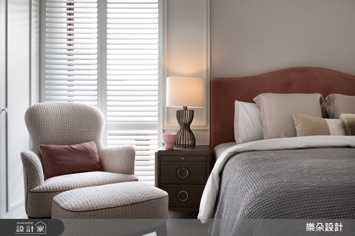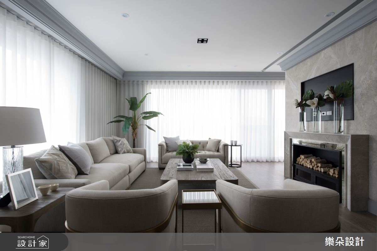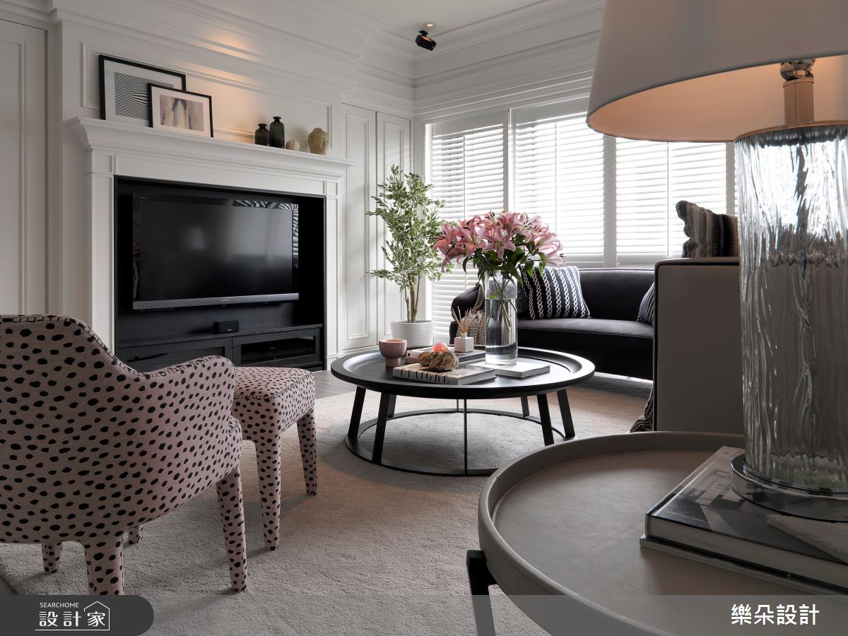 本案為樂朵室內設計的95坪新古典新成屋(5年以下)設計作品,格局為單層三房的居住空間。全室建材的搭配,應用壁紙、超耐磨木地板、鐵件、鍍鈦金屬、系統板材、大理石、磁磚、賽麗石、線板、噴漆,展現溫馨的居家氛圍。
