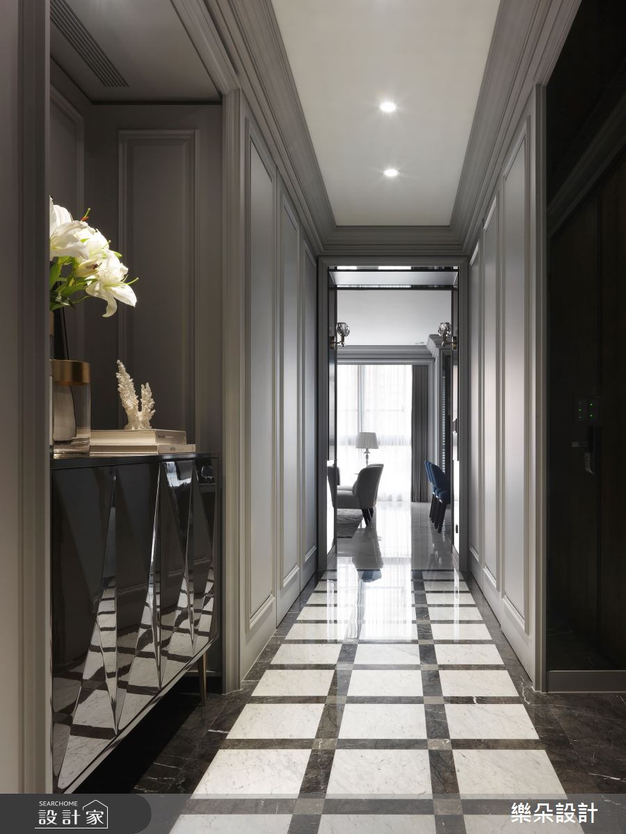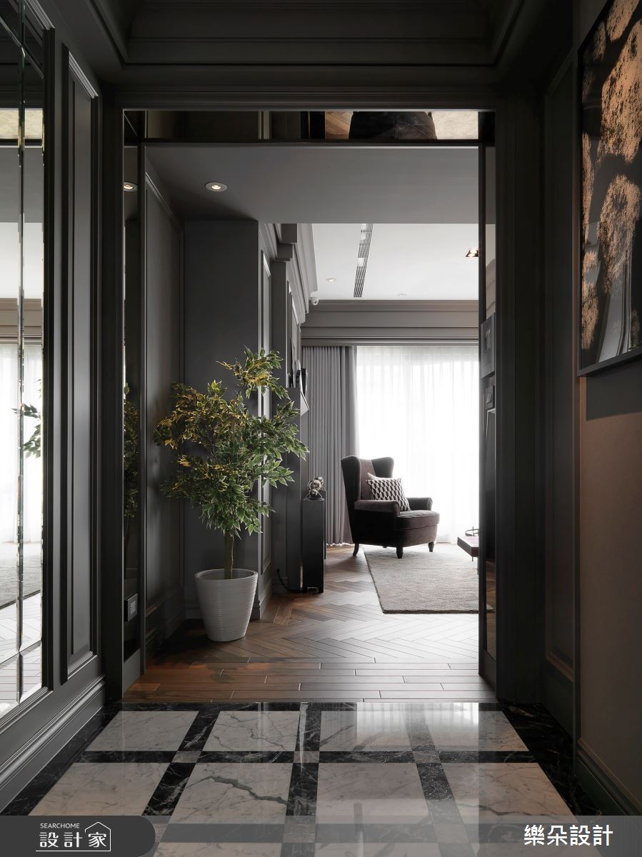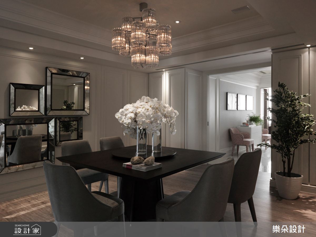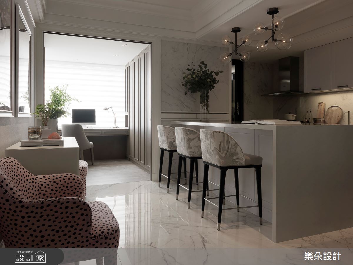 由樂朵室內設計精心規劃的77坪三房住宅空間。因應屋主需求,設計師運用新古典作為主軸,搭配壁紙、鐵件、灰鏡、磁磚、木百葉、線板、噴漆,打造全家人的夢想家居。