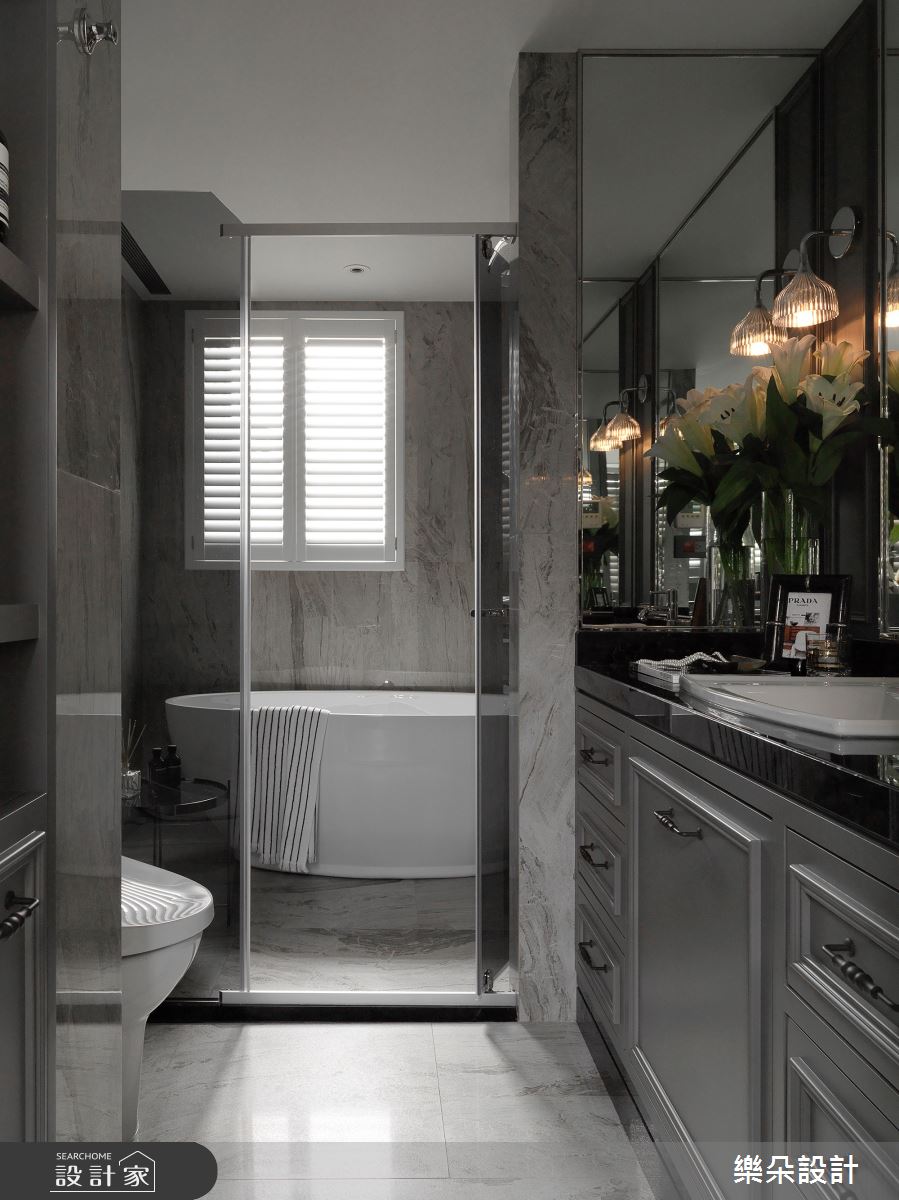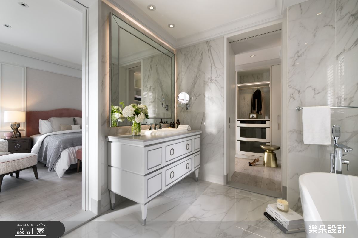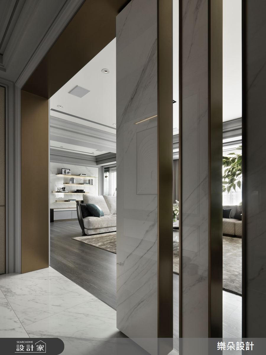 來自樂朵室內設計的92坪新古典住宅案,是一間單層新成屋(5年以下)的三房格局,設計師藉由建材以壁紙、超耐磨木地板、鐵件、灰鏡、大理石、木百葉、賽麗石、線板的搭配應用,實現一家人的理想生活。