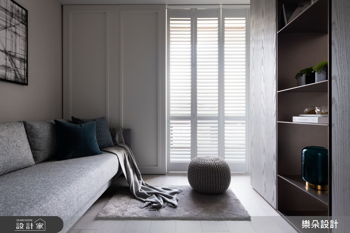 樂朵室內設計以壁紙、超耐磨木地板、鐵件、灰鏡、木百葉、賽麗石、線板、噴漆的搭配應用,呈現新古典居家氛圍,將此間36坪、三房、單層、新成屋(5年以下)打造成舒適愜意的家庭空間,完成全家人的夢想之居。