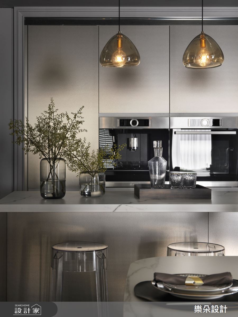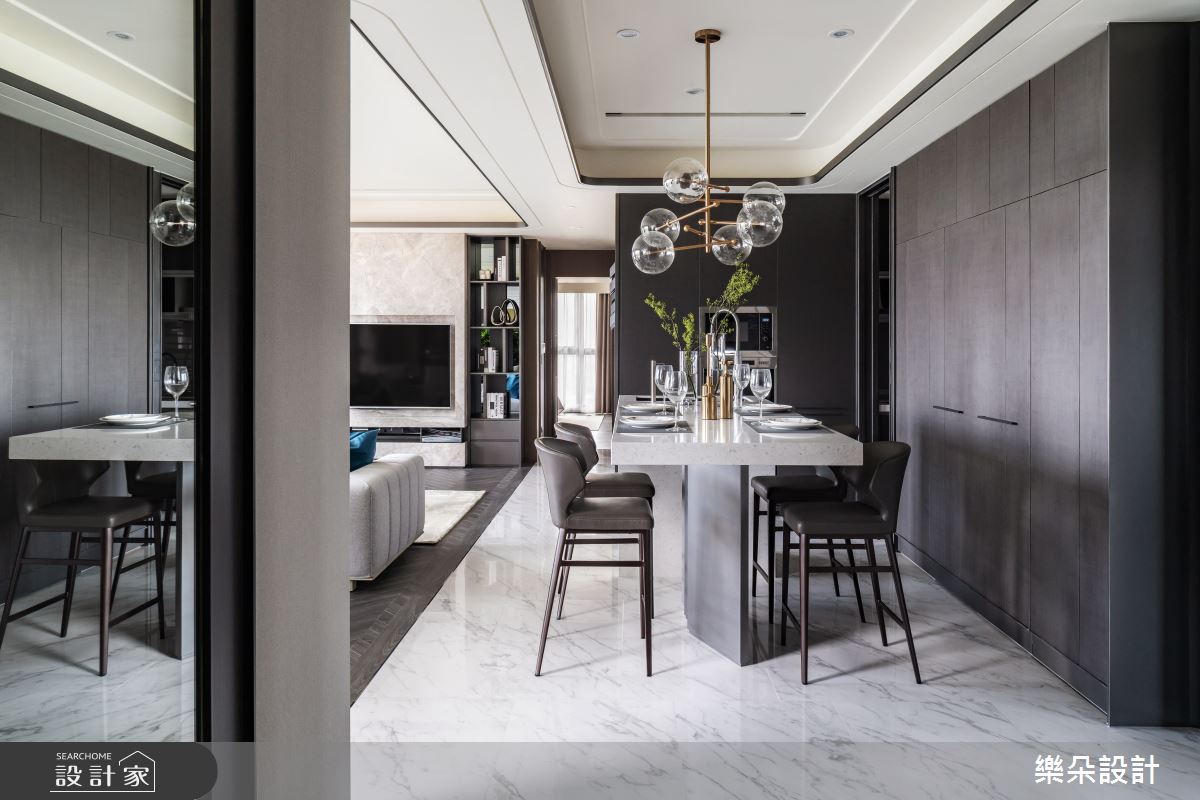 由樂朵室內設計精心規劃的60坪兩房住宅空間。因應屋主需求,設計師運用現代風作為主軸,搭配超耐磨木地板、鐵件、鍍鈦金屬、大理石、賽麗石,打造全家人的夢想家居。