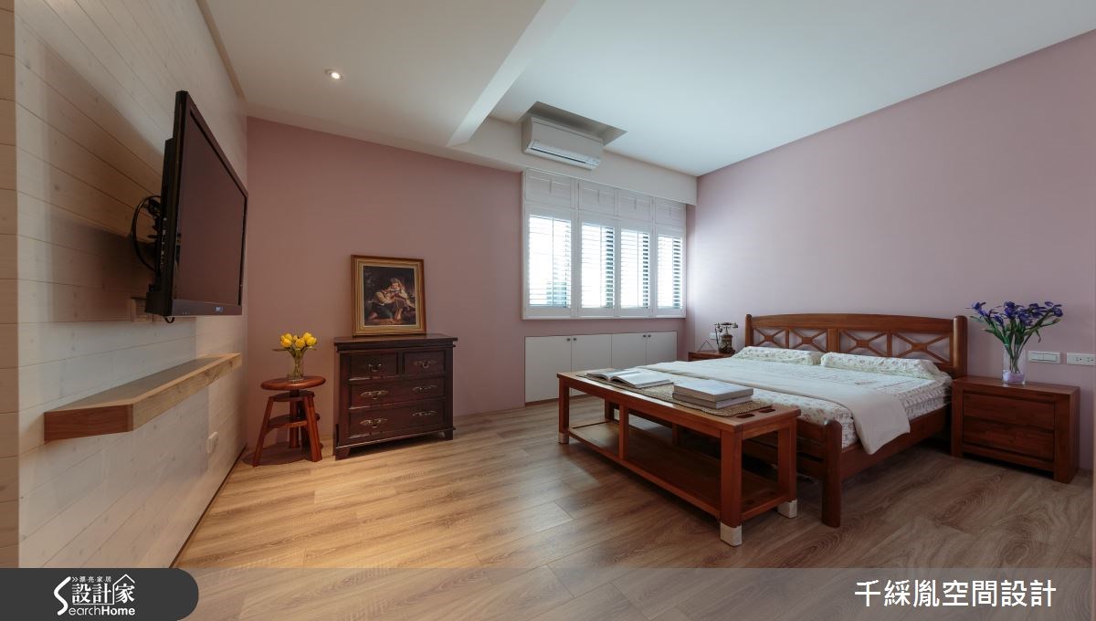 以愜意的鄉村風定調,溫暖的木紋質感鋪敘空間,且將屋主鍾情的拼布元素融於室內設計裡,局部利用各式的異國花磚妝點,調和活潑、豐盛的美學氛圍,創造雅致、獨特的居家氣息。 玄關處的地板以西班牙復古磚鋪陳,豐富視覺成為最吸引人的迎賓風格,鞋櫃旁再搭配穀倉造型拉門,創造輕甜夢幻的鄉村風格。木頭紋路拼貼出地坪風景,傳遞漸層的視覺造型,清晰木紋肌理轉化為電視牆體,搭載L型收納機能,讓美感與實用特性兼備;格柵造型橫跨公領域的天花板,串聯客、餐廳領域,並巧妙修飾樑體結構,同時展現新穎的設計美感;壁面利用鹿頭造型家飾,餐桌上方垂掛自然的鹿角燈飾,挹注原始的野性呼喚,型塑獨特的自然風景。電視牆的右側以一道鐵件玻璃拉門,界定出公私領域,左側為餐廚空間,壁面與吧檯上結合馬賽克拼貼元素,呼應鄉村風的動人靈感。 小編的最愛 為了改善原本陰暗的室內感受,除了調整空間格局,同時在各區加設窗戶,將戶外的光源引援入室,明亮的光源照亮各個角落。