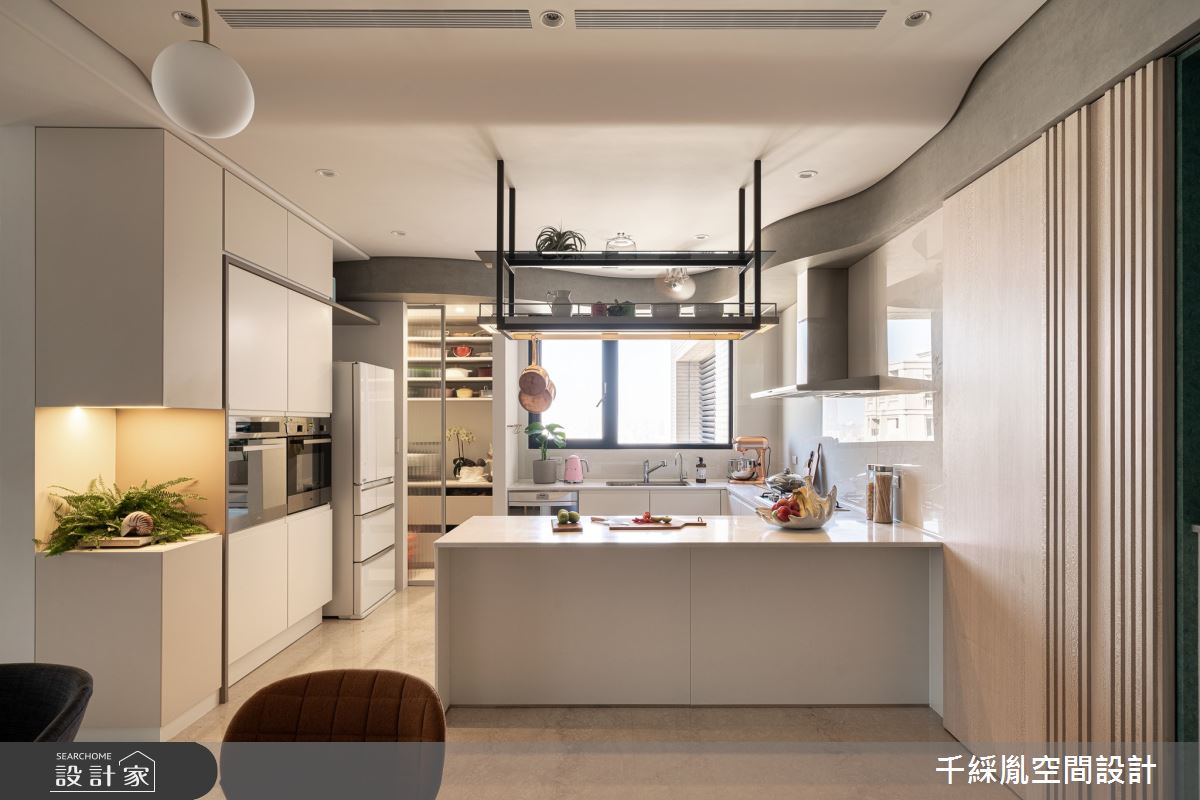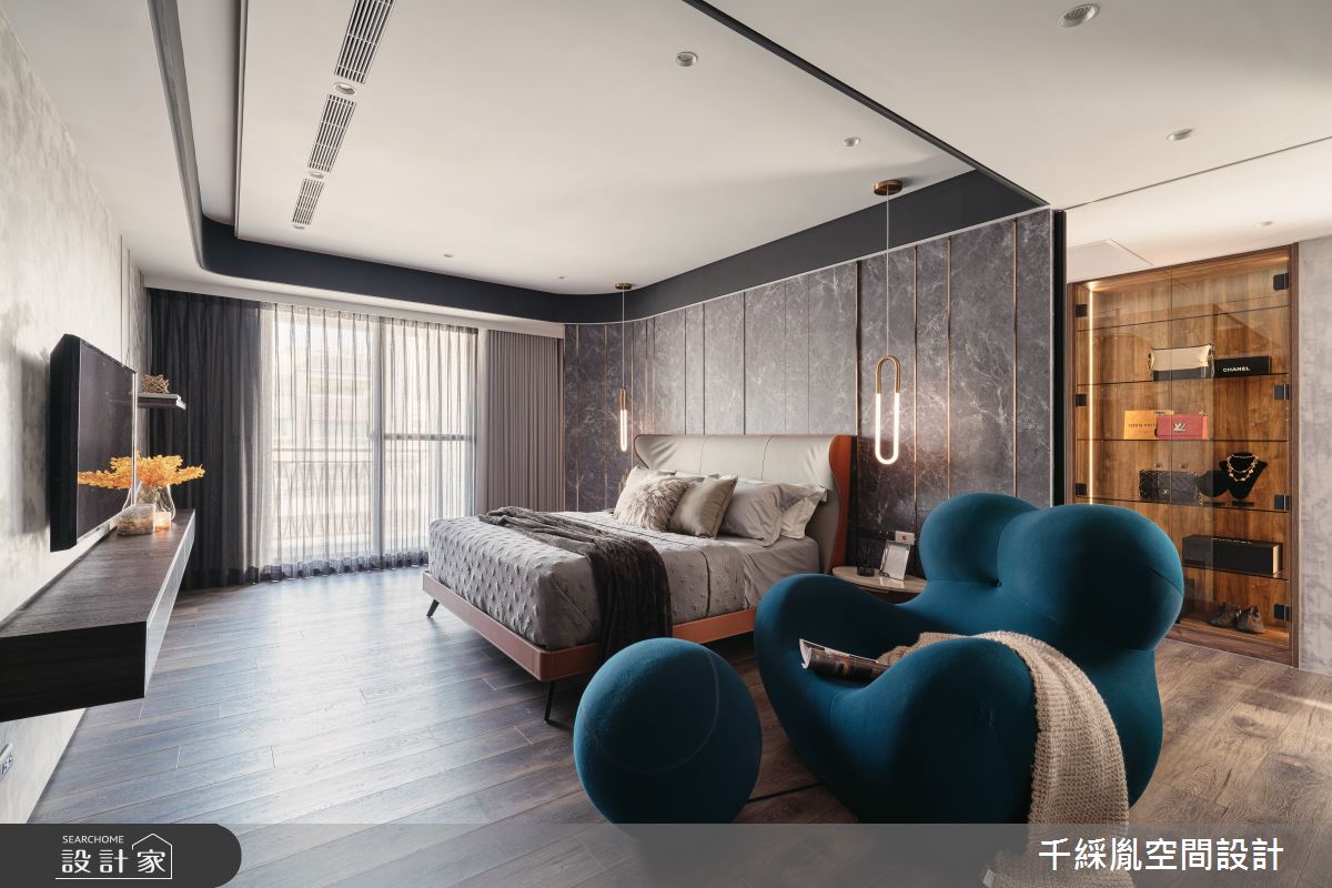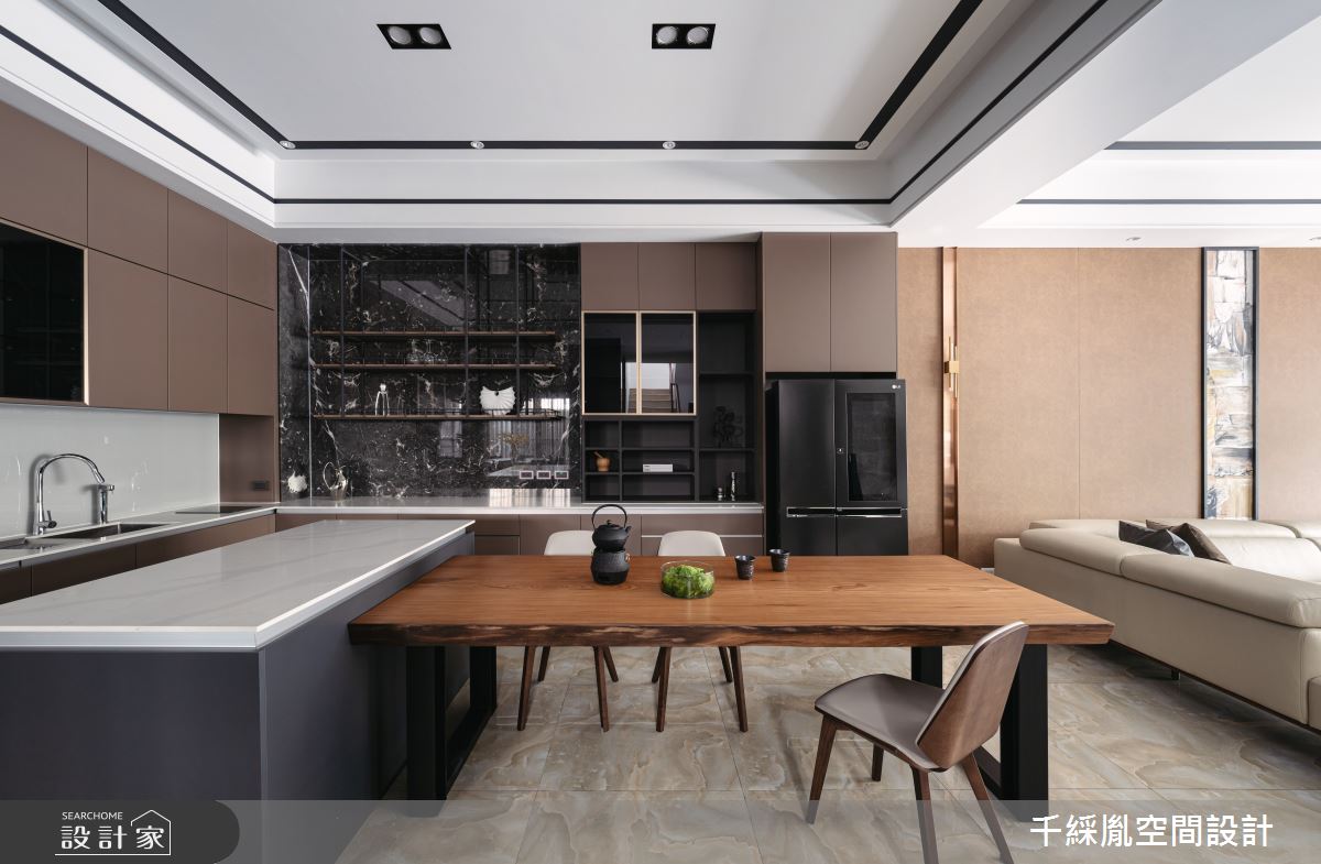 來自千綵胤空間設計的60坪現代風住宅案,是一間單層新成屋(5年以下)的四房格局,設計師藉由建材以油漆、壁紙、大圖輸出、灰鏡、鍍鈦金屬、木作貼皮、系統板材、石材、特殊漆的搭配應用,實現一家人的理想生活。
